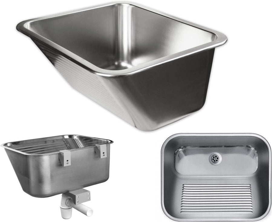 VBChome Ausgussbecken 55 x 45 x 22 cm Waschtrog Edelstahl Satinstruktur Stahl Ablaufgarnitur Waschbe