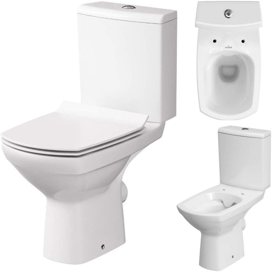 Keramik Stand- WC Toilette Komplett -Design- Set mit Spülkasten WC- Sitz Slim aus Duroplast mit Abse