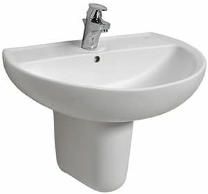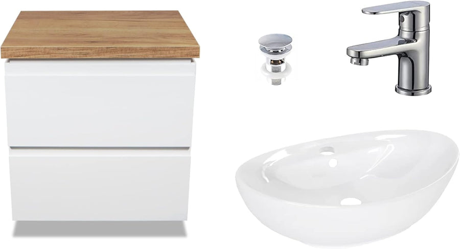 VBChome Badmöbel 50 cm Weiss Aufsatzwaschbecken mit Hahnloch und Armatur 59x39 cm Aufsatzwaschtisch