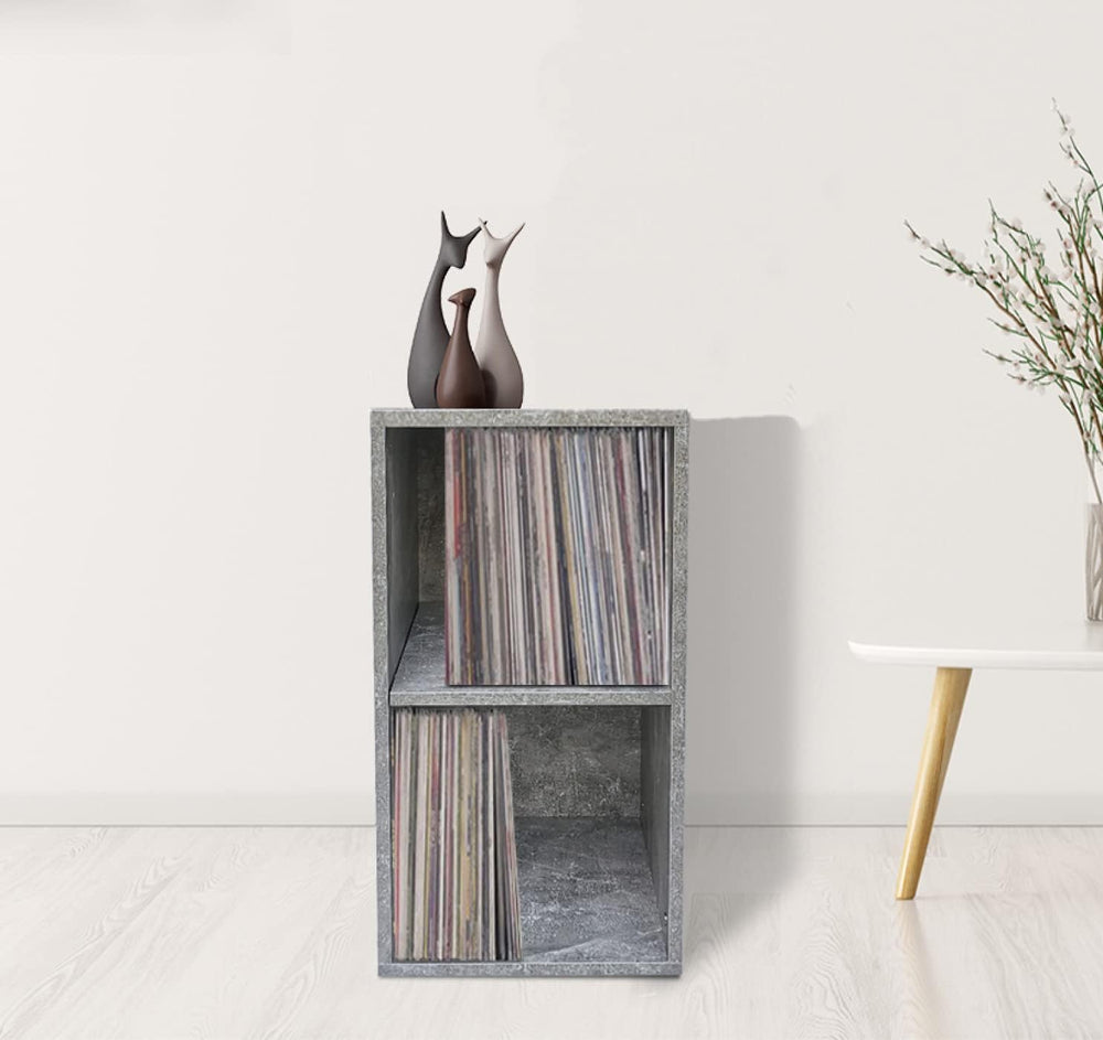 Schallplattenschrank - Aufbewahrung von Schallplatten - Plattenspielermöbel - graue Betonoptik