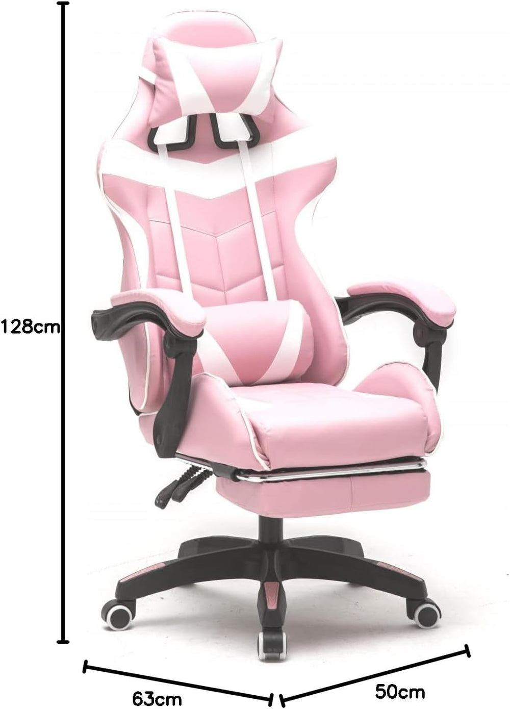 Gaming Stuhl mit Fussstütze Cyclone Teenager - Bürostuhl - Racing Gaming Stuhl - Rosa Weiss