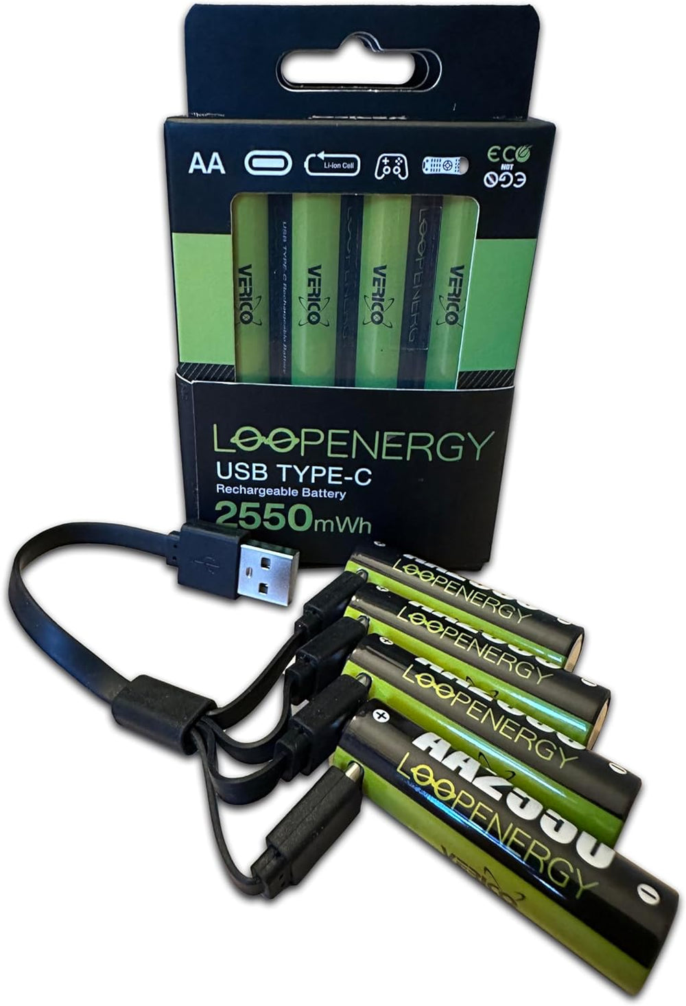 VERICO LoopEnergy AA 2550 Wiederaufladbare USB-C Batterie AA 1,5V 2550mWh (1700mAh) Li-Ion, Schnelll