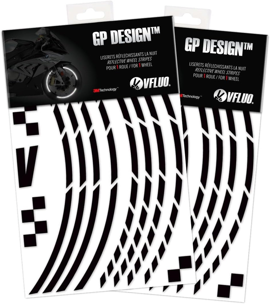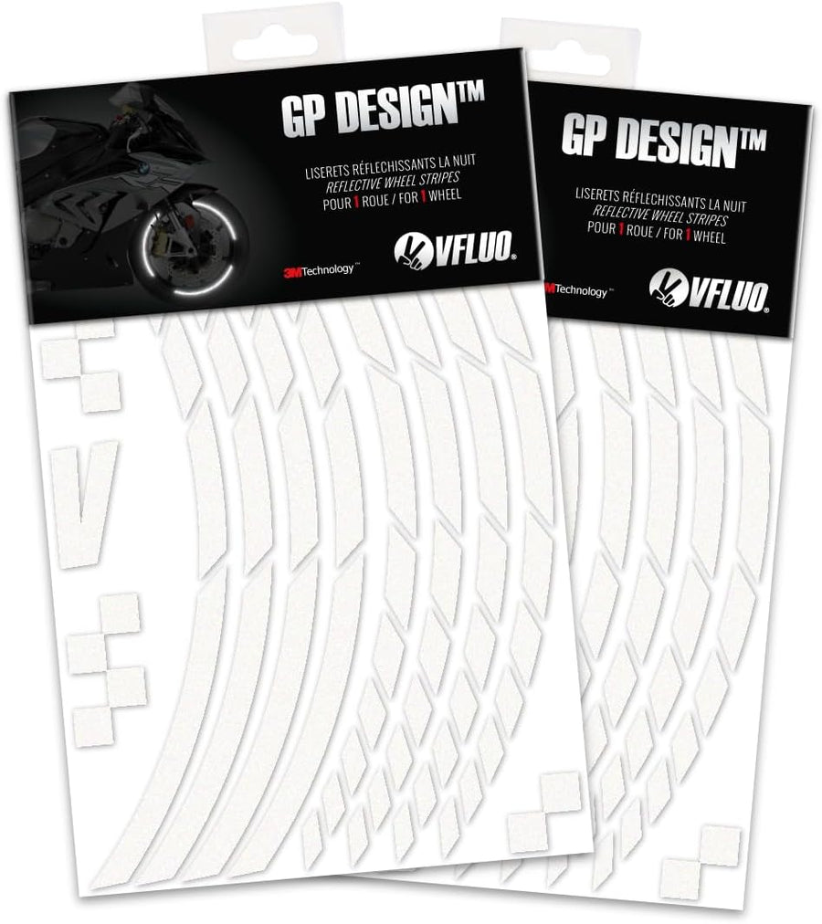 VFLUO - 2 x Kit Reflektierende Felgenrandaufkleber GP Motorrad, Aufkleber für 2 Räder 3M™-Technologi