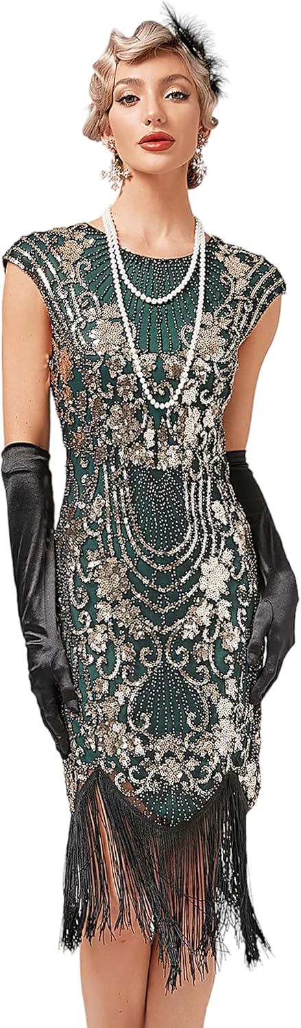 VILOREE 1920s Kleid Damen Flapper Charleston Kleid Gatsby Pailletten Cocktail Abschlussballkleid Par