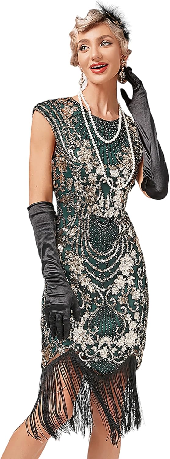 VILOREE Damen Kleid voller Pailletten 20er Stil Runder Ausschnitt Inspiriert von Great Gatsby Kostüm