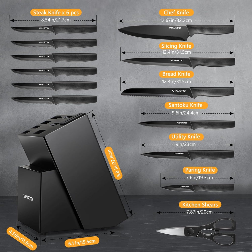 VINATO Messerset mit Messerblock,14-tlg Messerblock mit Schärfer, Kochmesser Profi Messerset, Scharf