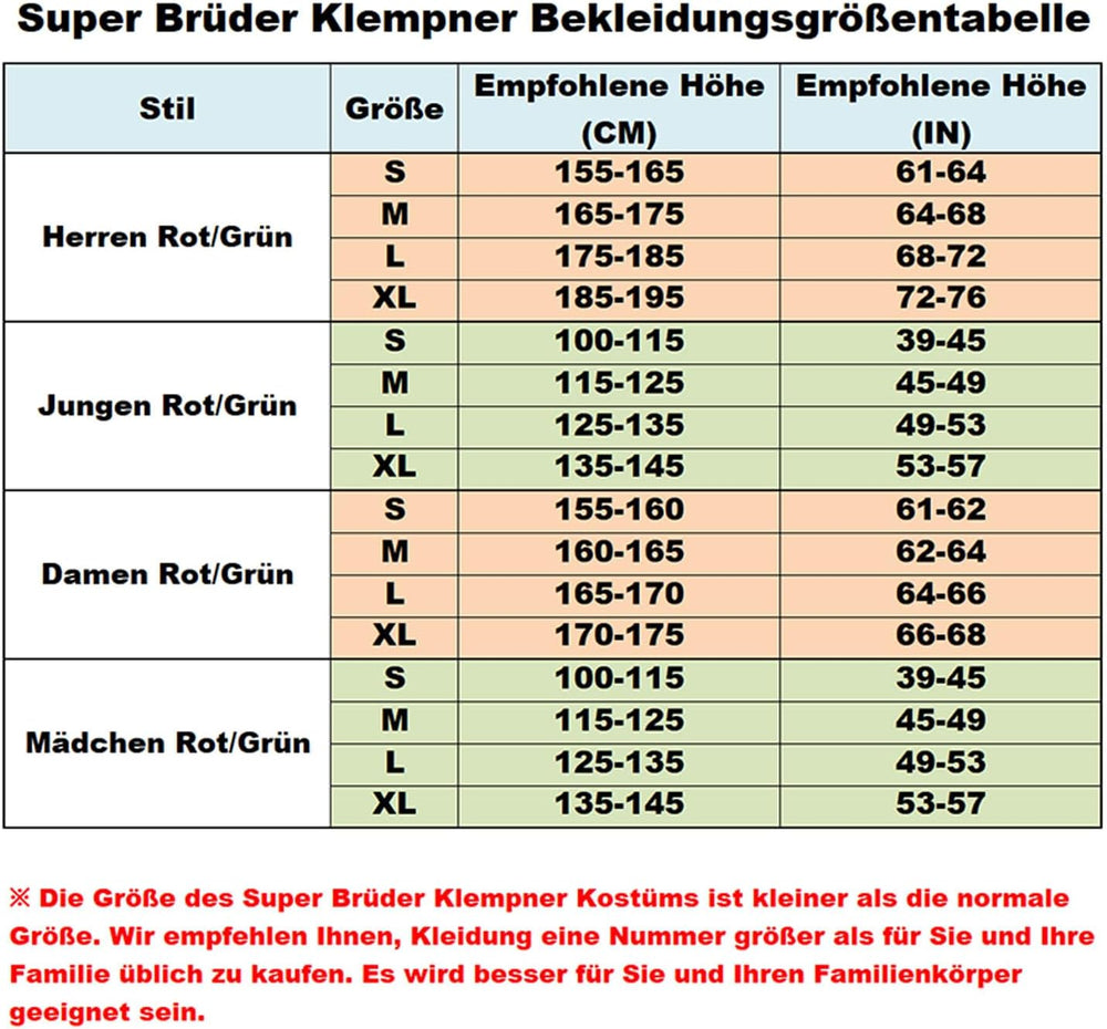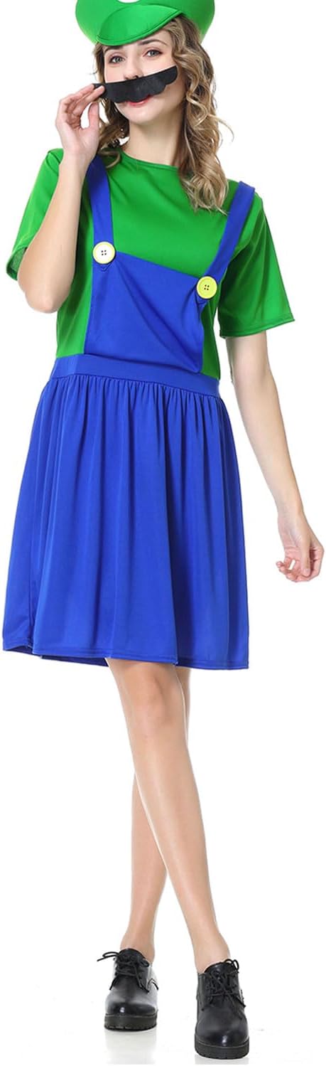 VISVIC Cosplay Kostüm Super Brothers Klempner, Kostüm mit Bodysuit, Cap und Schnurrbart, Karneval Ha