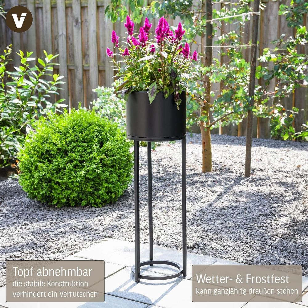 VIVANNO Blumentopf auf Ständer mit Beinen Füssen Gestell Elevate Round Schwarz (79x25 cm)