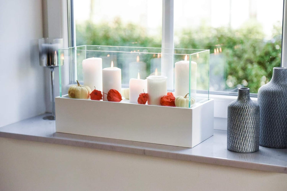 Deko-Windlicht Kerzenhalter rechteckig CANDELITO - Weiss Matt 50x20x29 50x20x29 Weiss Matt, 50x20x29