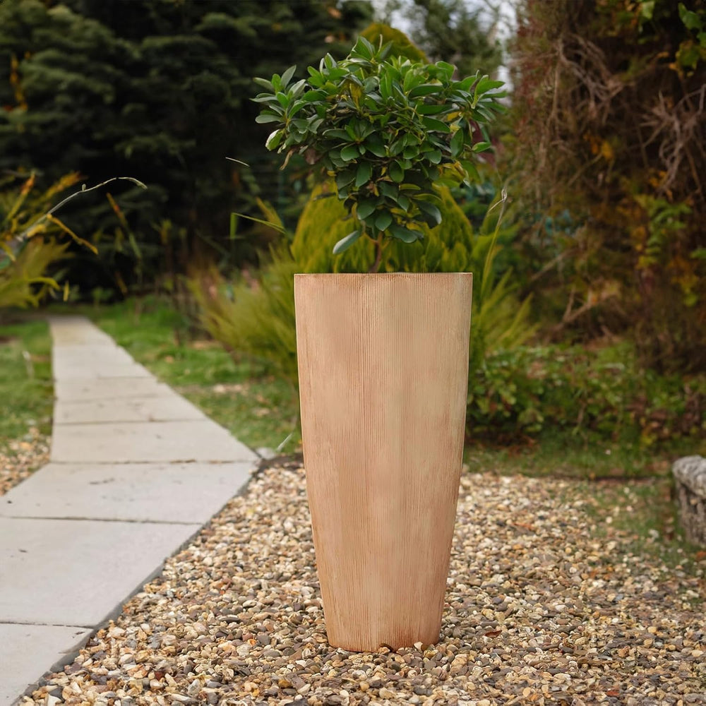 VIVANNO Pflanzkübel Pflanzgefäss Blumenkübel Fiberglas City Beige - 80x37 80x37 cm Beige Geriffelt,