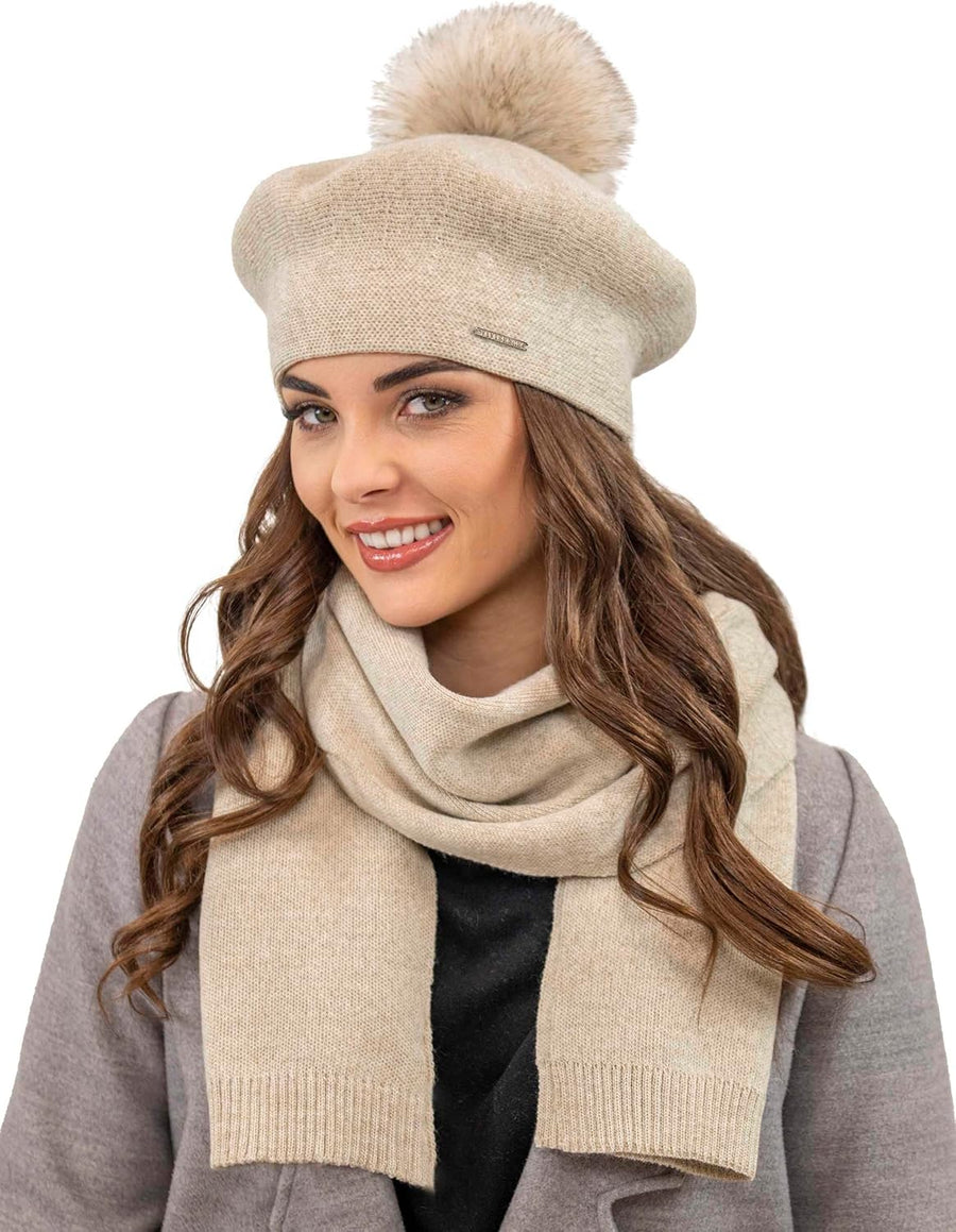 VIVISENCE Damen Baskenmütze Mit Bommel Eleganter Wintermütze Warm Und Gemütlich Kopfbedeckung An Win