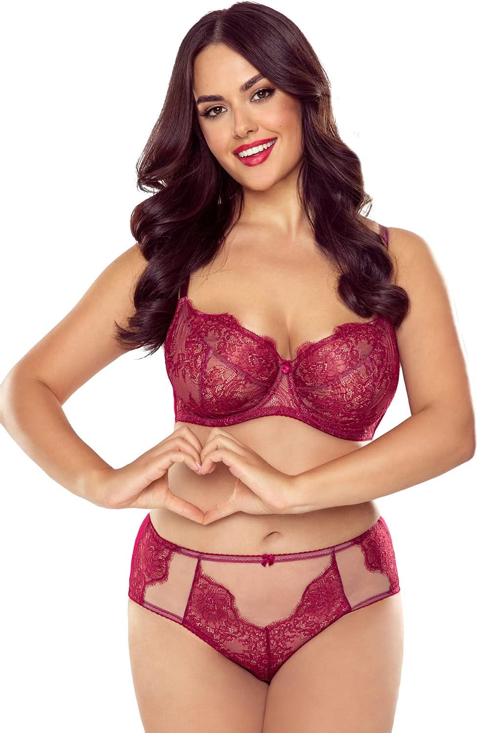 VIVISENCE Dame Soft-BH Spitze Klassisch Geblümt Sinnlich Nicht Gepolsterte Cups 1059 S Weinrot, S We