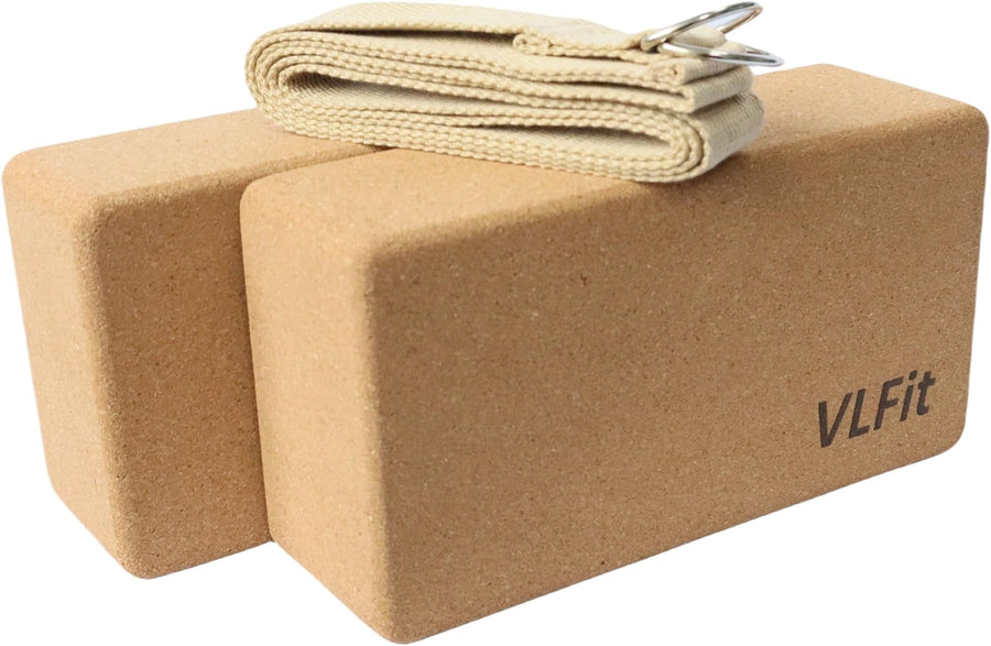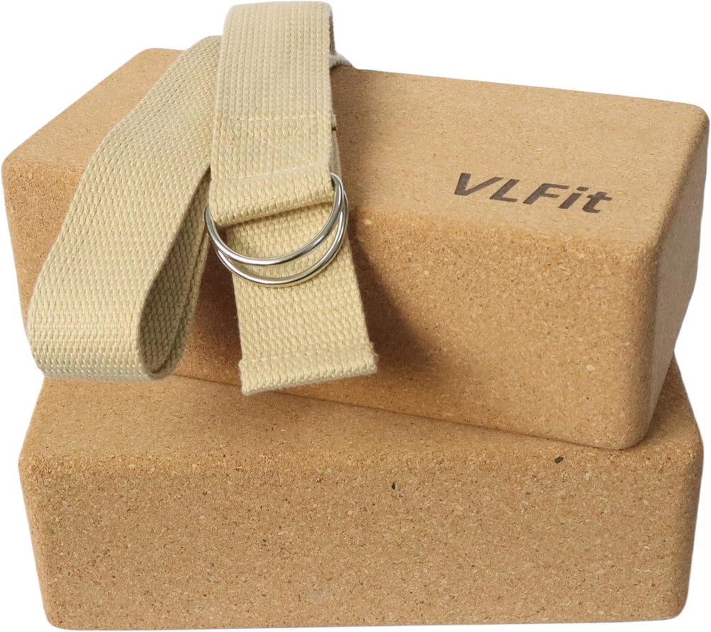 VLFit KORK Yogablock 2er Set - mit Yogagurt aus 100% Baumwolle - umweltfreundlicher Yogablock - ökol
