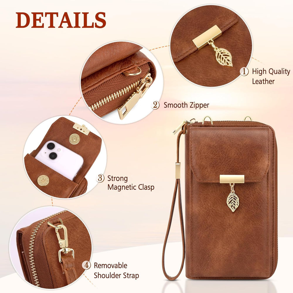 VOBUKE Handytasche mit Geldbörse zum Umhängen RFID Schutz Handy Tasche Damen Umhänge Leder Kleine Ha