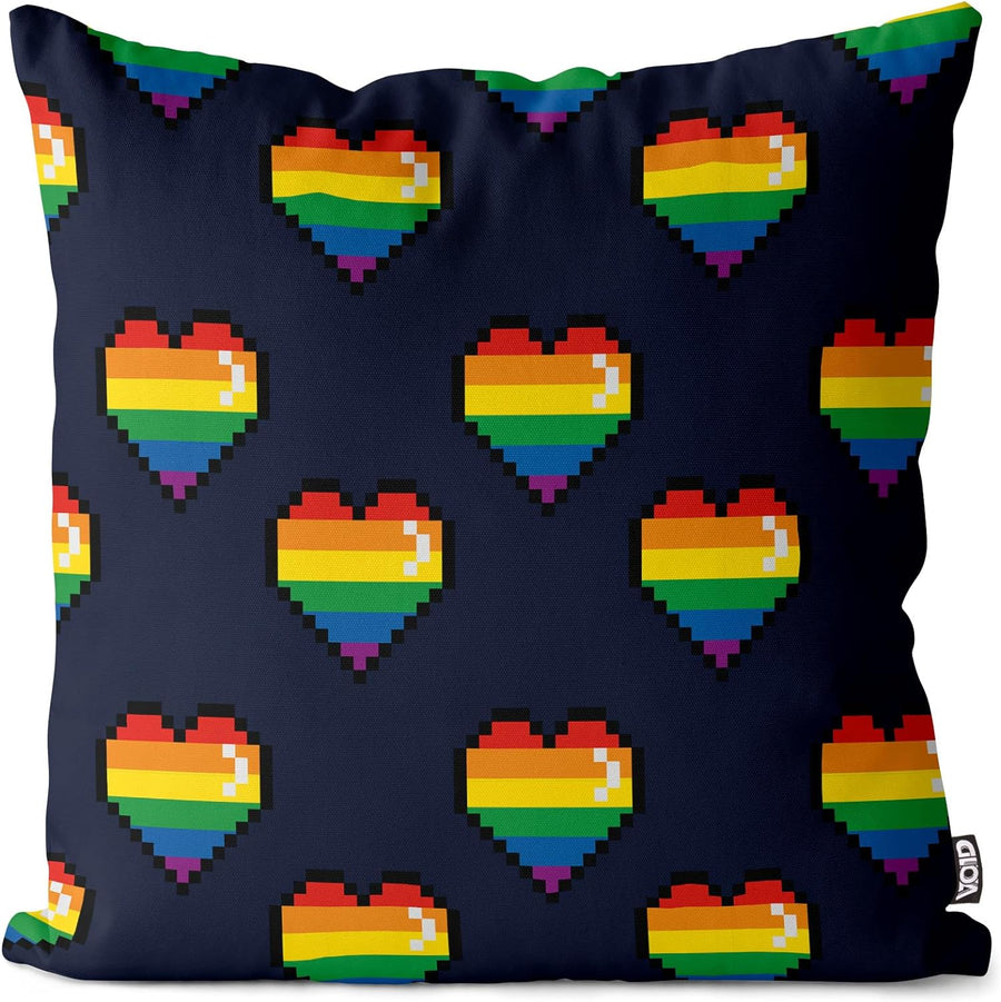 VOID 8-Bit Pride Regenbogen Herzen Kissenbezug Kissenhülle Polyester wasserfest Outdoor Indoor, Kiss
