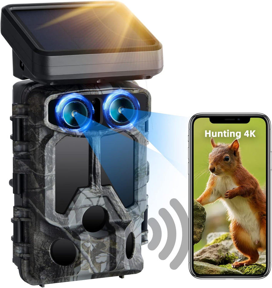 VOOPEAK Duales Objektiv Solar Wildkamera WLAN 4K 60MP, Sternenlicht Nachtsicht Wildkamera mit Handyü