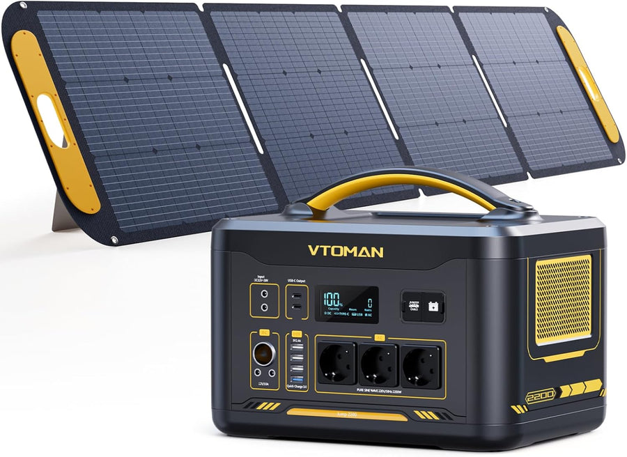 VTOMAN Jump 2200 Tragbare Powerstation mit 220W Solarpanel - 2200W/1548Wh LiFePO4 Batterie Solar Str