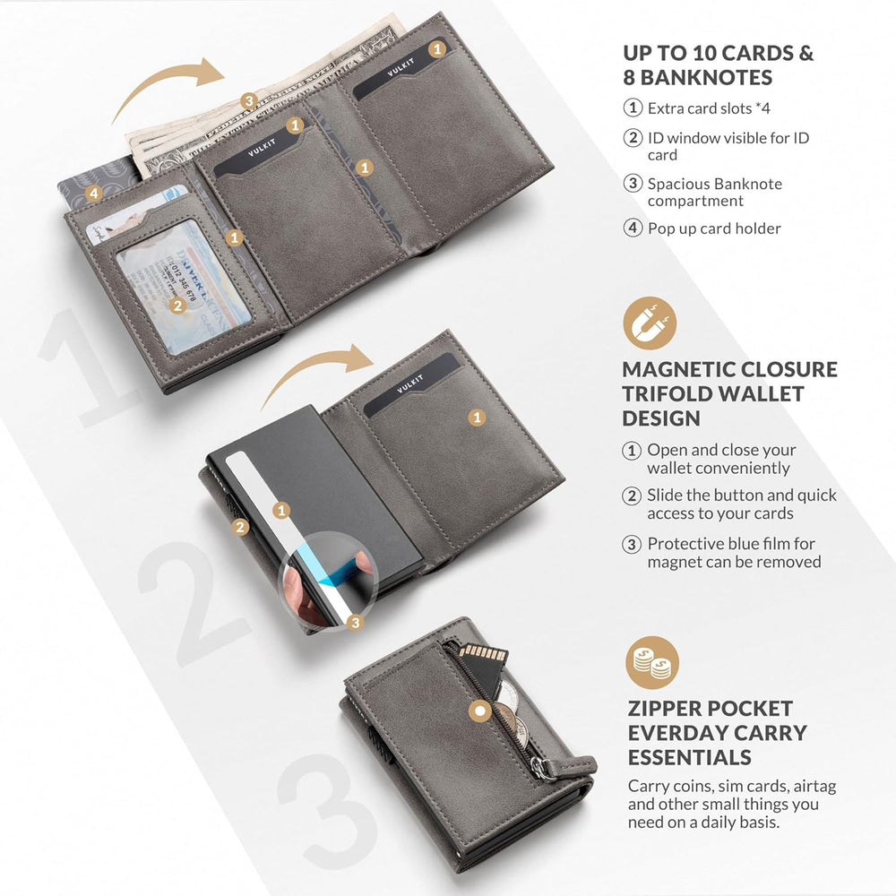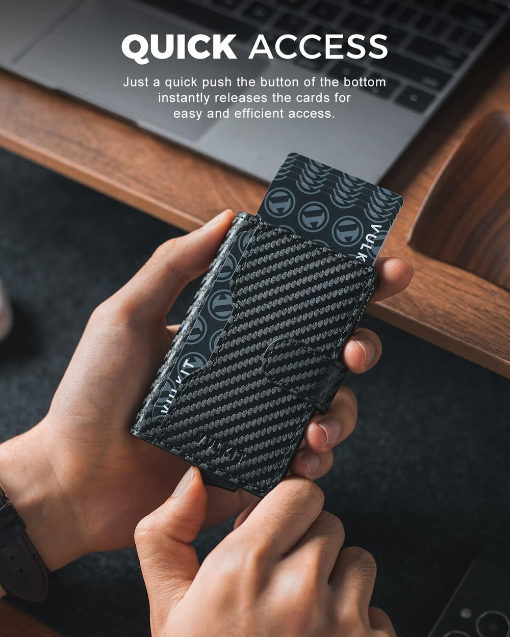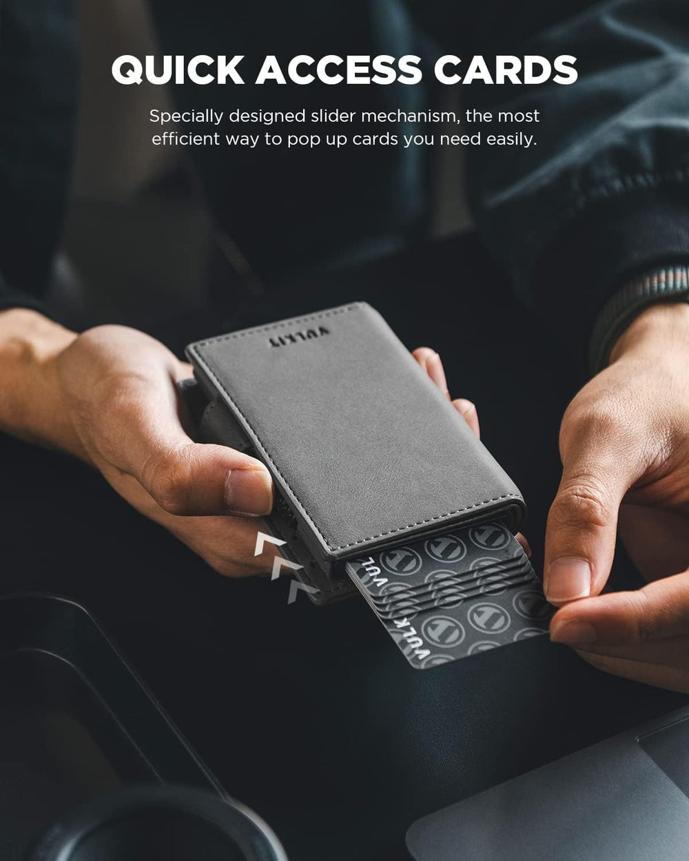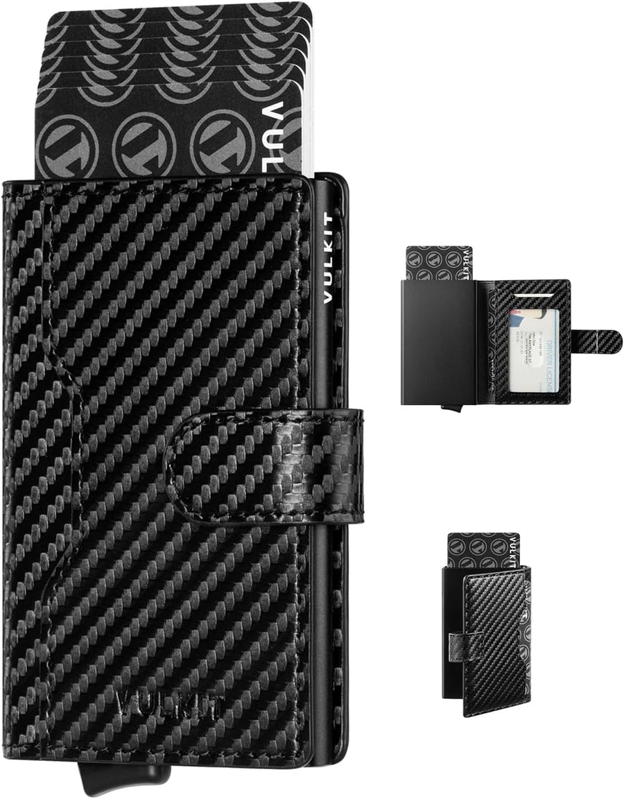 VULKIT Kreditkartenetui mit EDC-Fächern und Ausweisfenster, RFID-blockierende Pop Up Karten Geldbörs