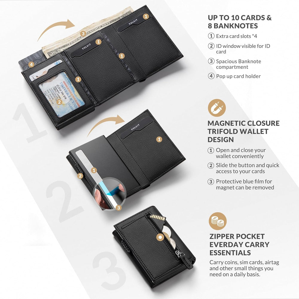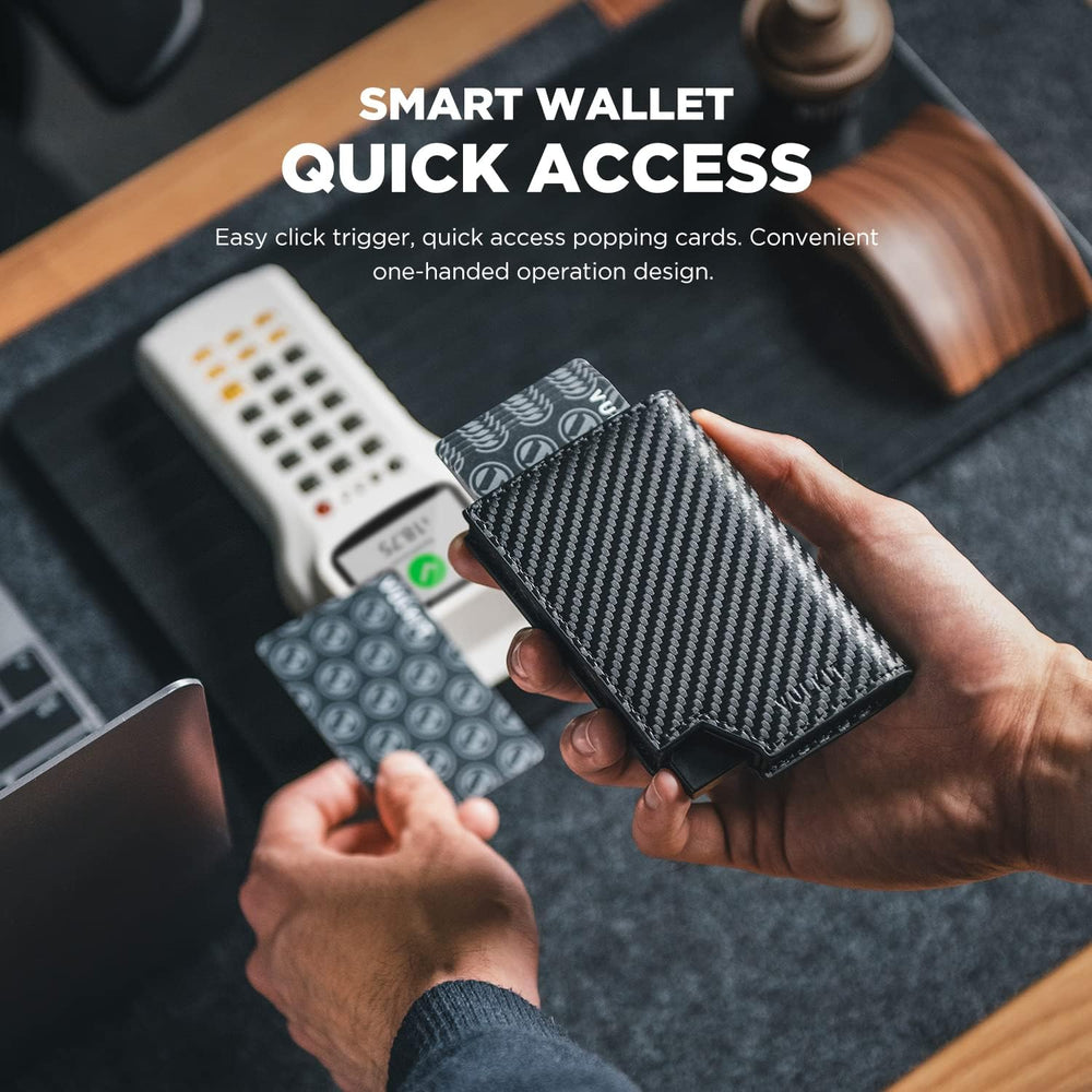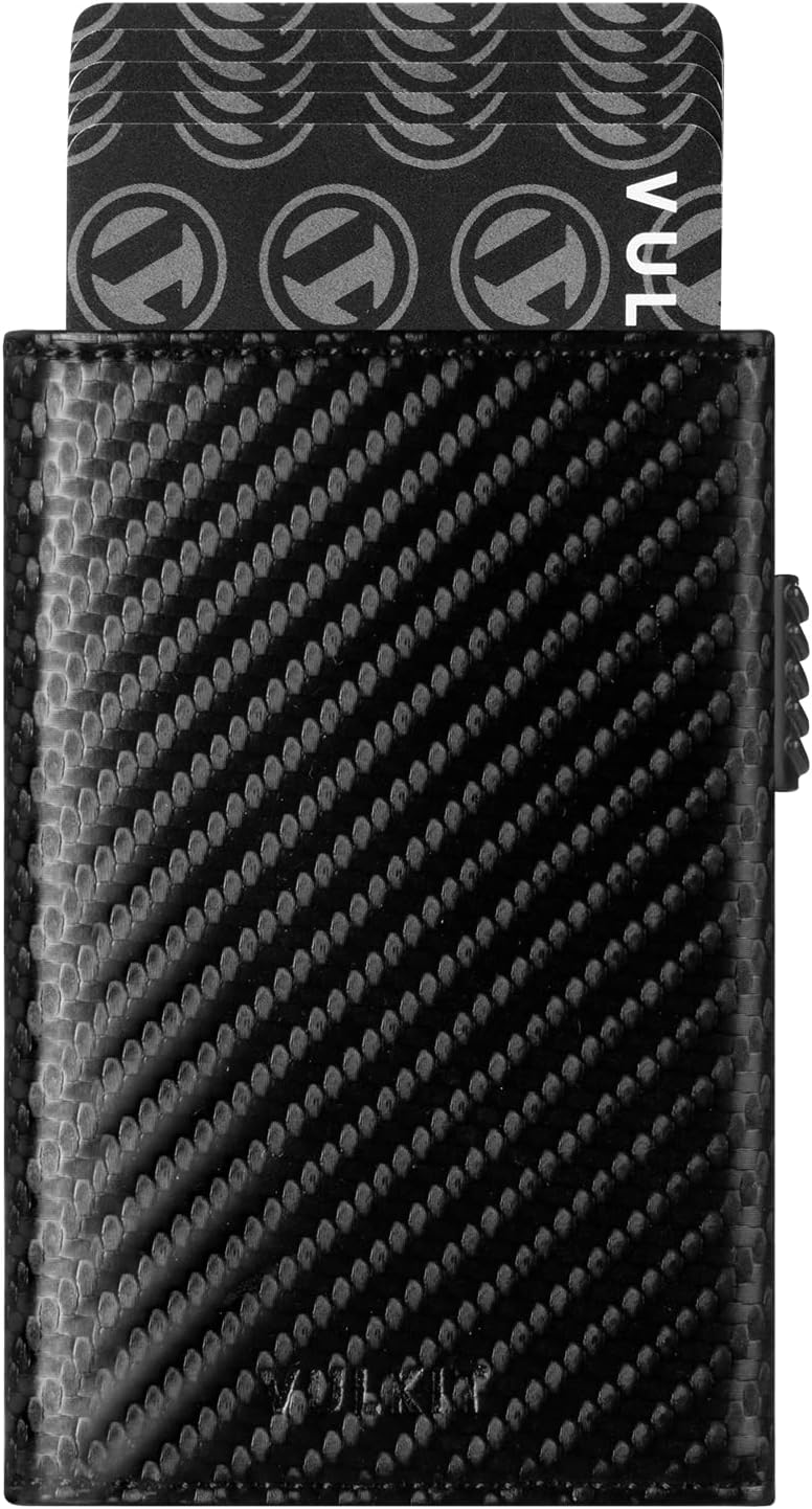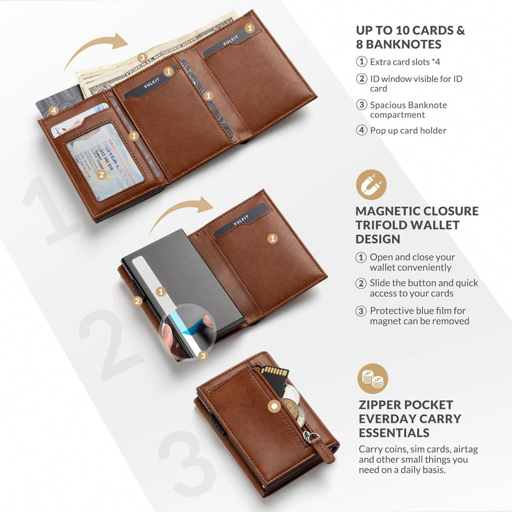 VULKIT Kreditkartenetui mit EDC-Fächern und Ausweisfenster, RFID-blockierende Pop Up Karten Geldbörs