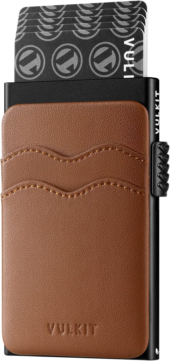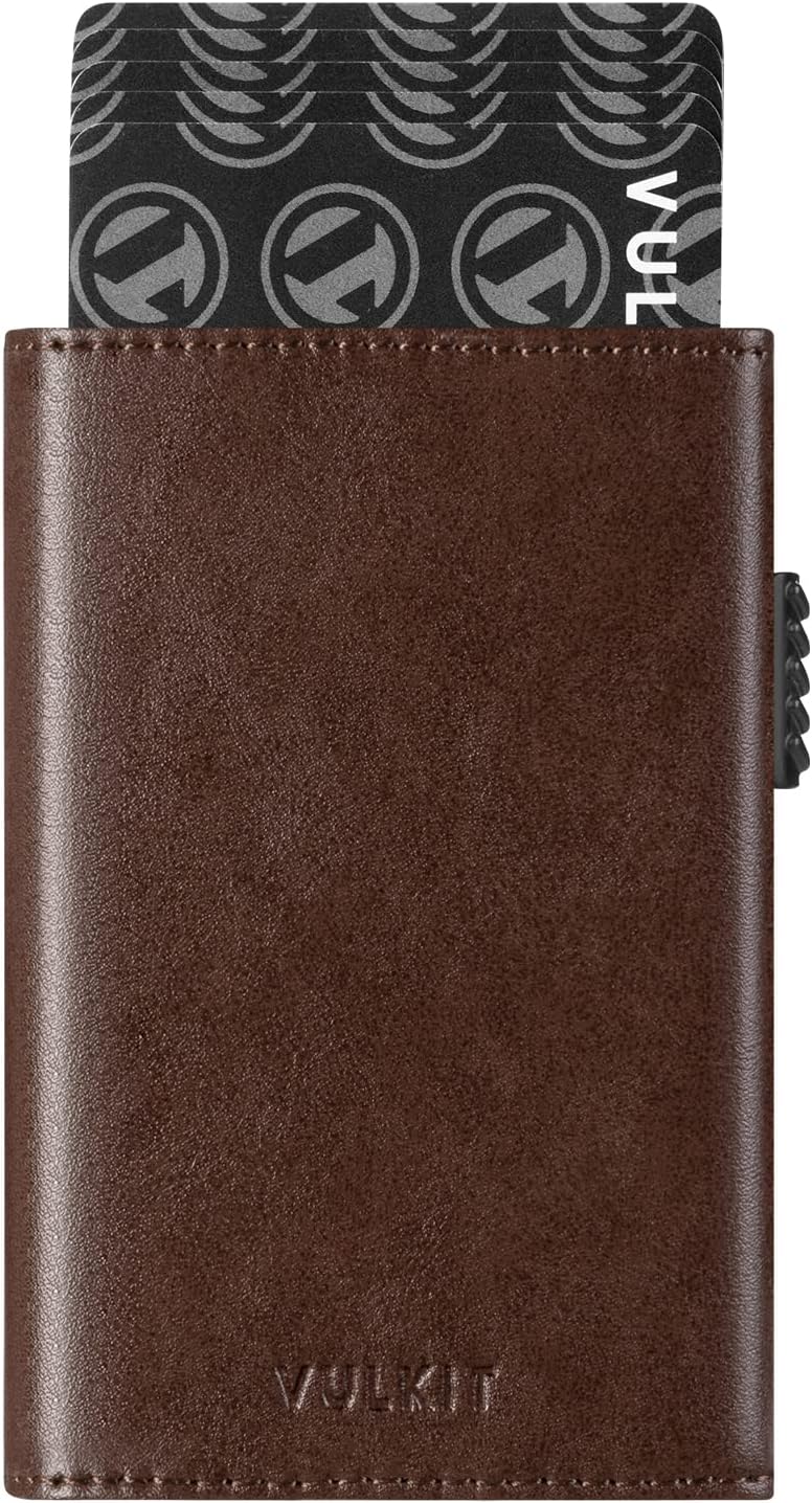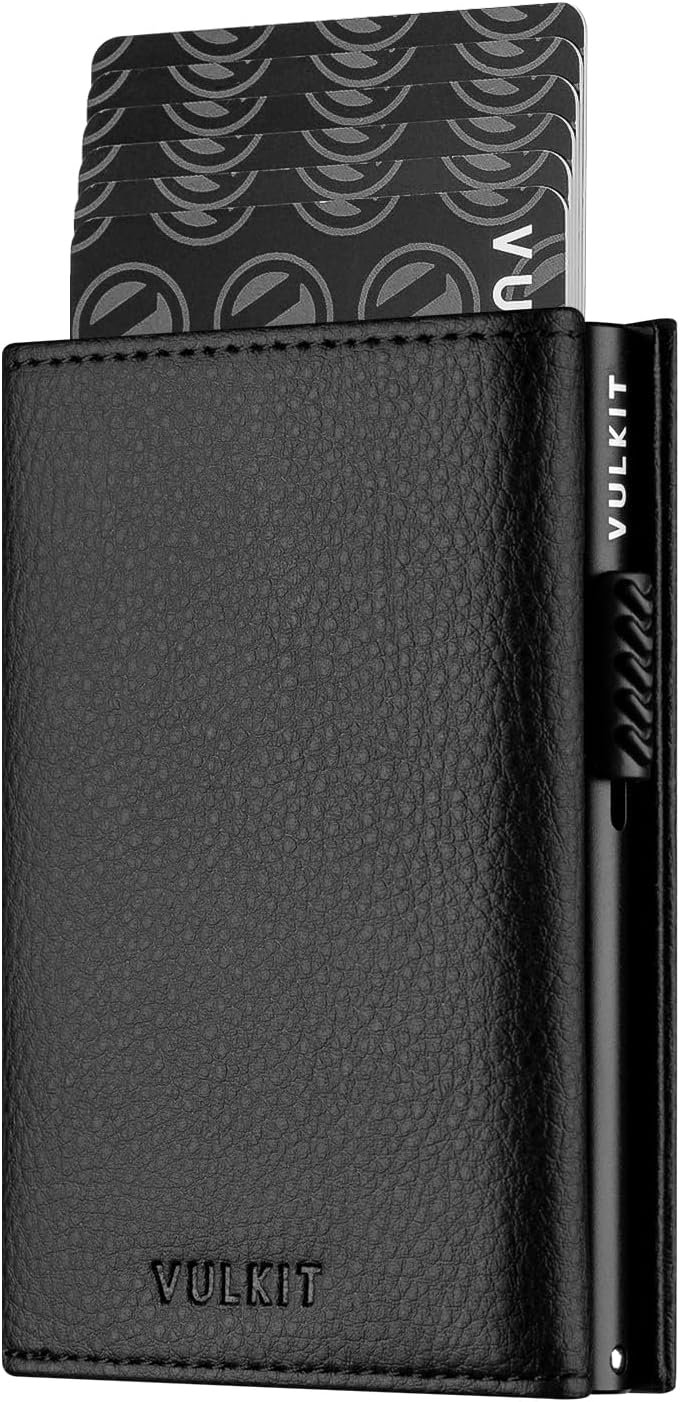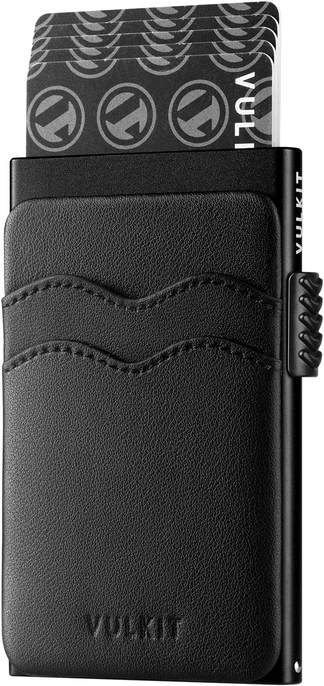 VULKIT Kreditkartenetui Minimalistische Slim Pop Up Geldbörse mit Lederschlitzen RFID-Blockierung fü