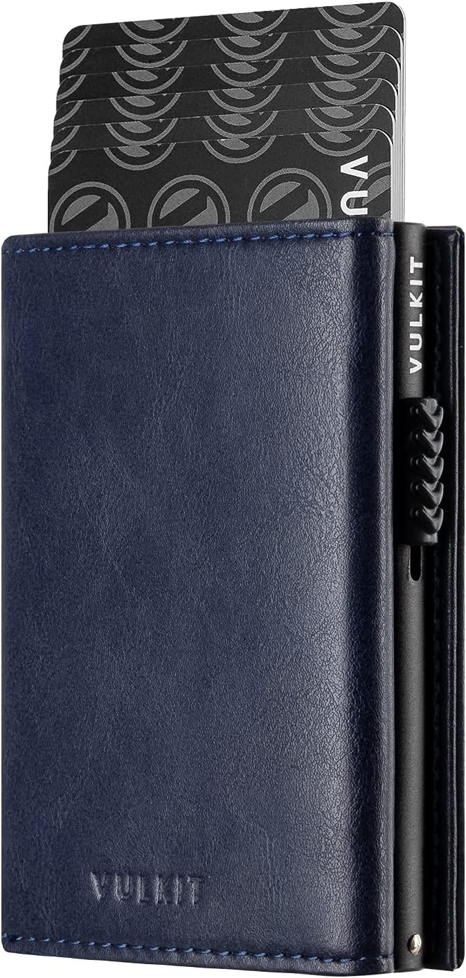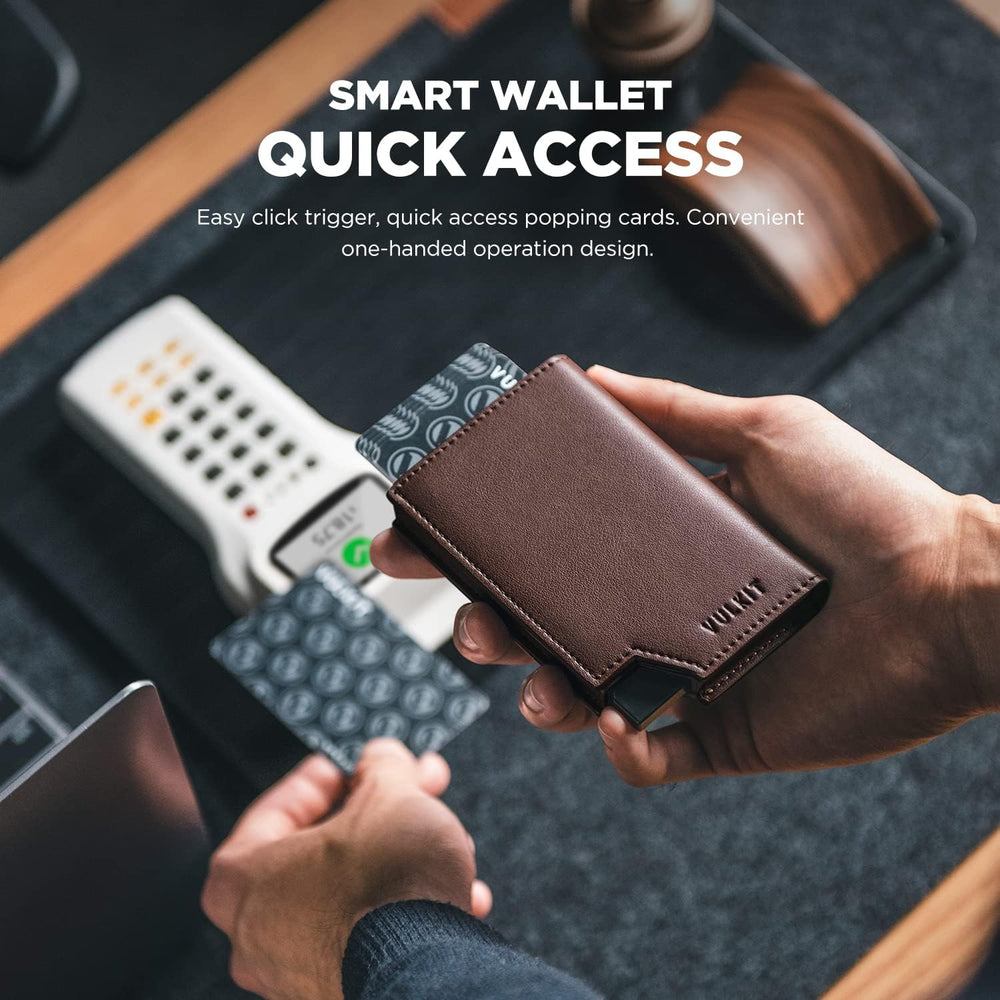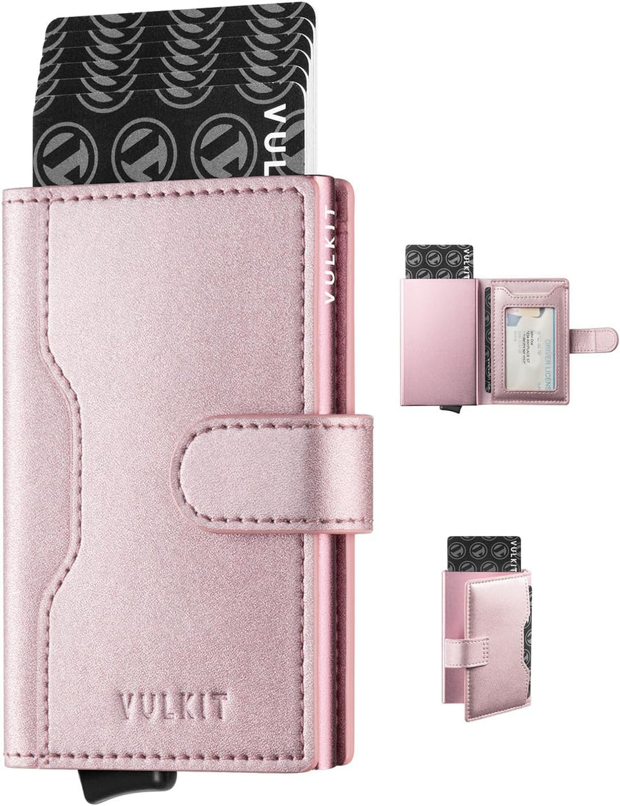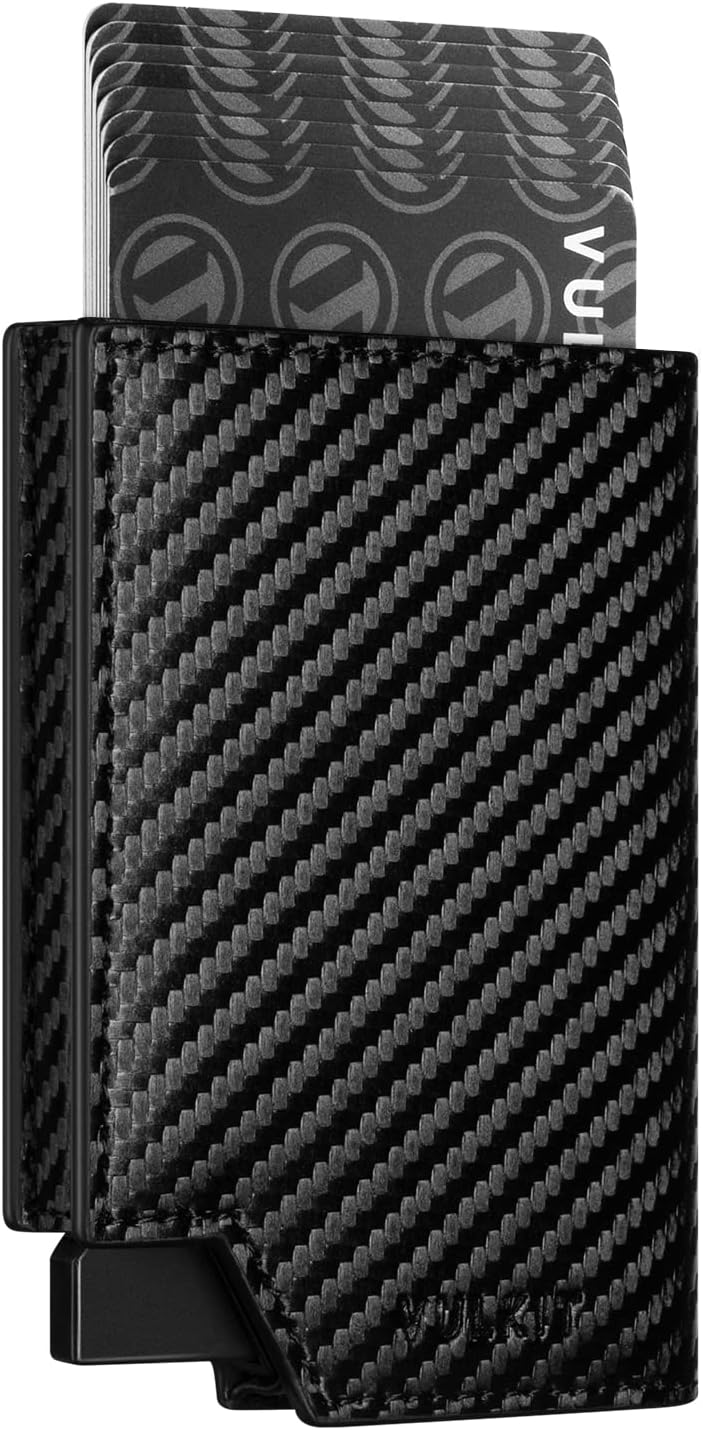 VULKIT Kreditkartenetui Minimalistische Slim Pop Up Geldbörse mit Lederschlitzen RFID-Blockierung fü
