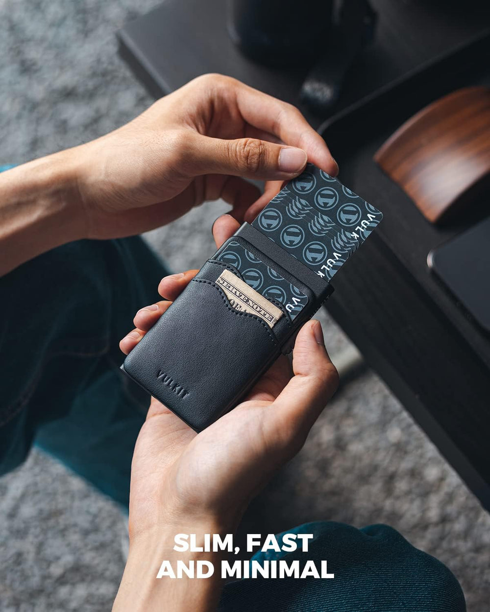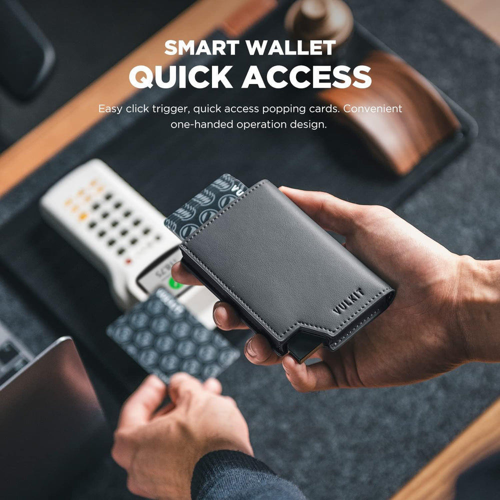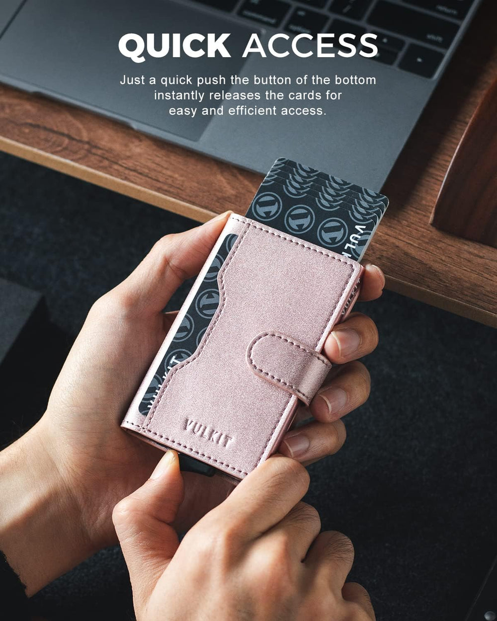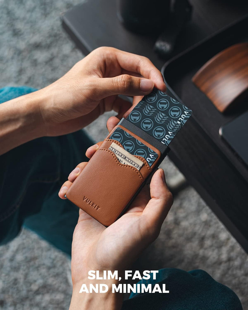 VULKIT Kreditkartenetui Minimalistische Slim Pop Up Geldbörse mit Lederschlitzen RFID-Blockierung fü