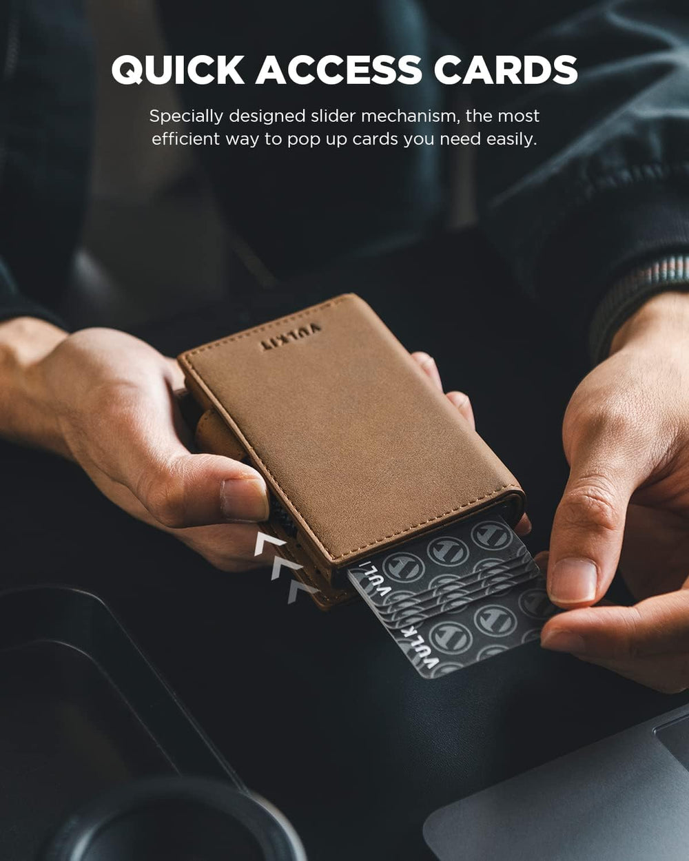 VULKIT Kreditkartenetui RFID-blockierende Pop-Up-Kartentasche aus Echtem Leder mit Geldscheinfach, A