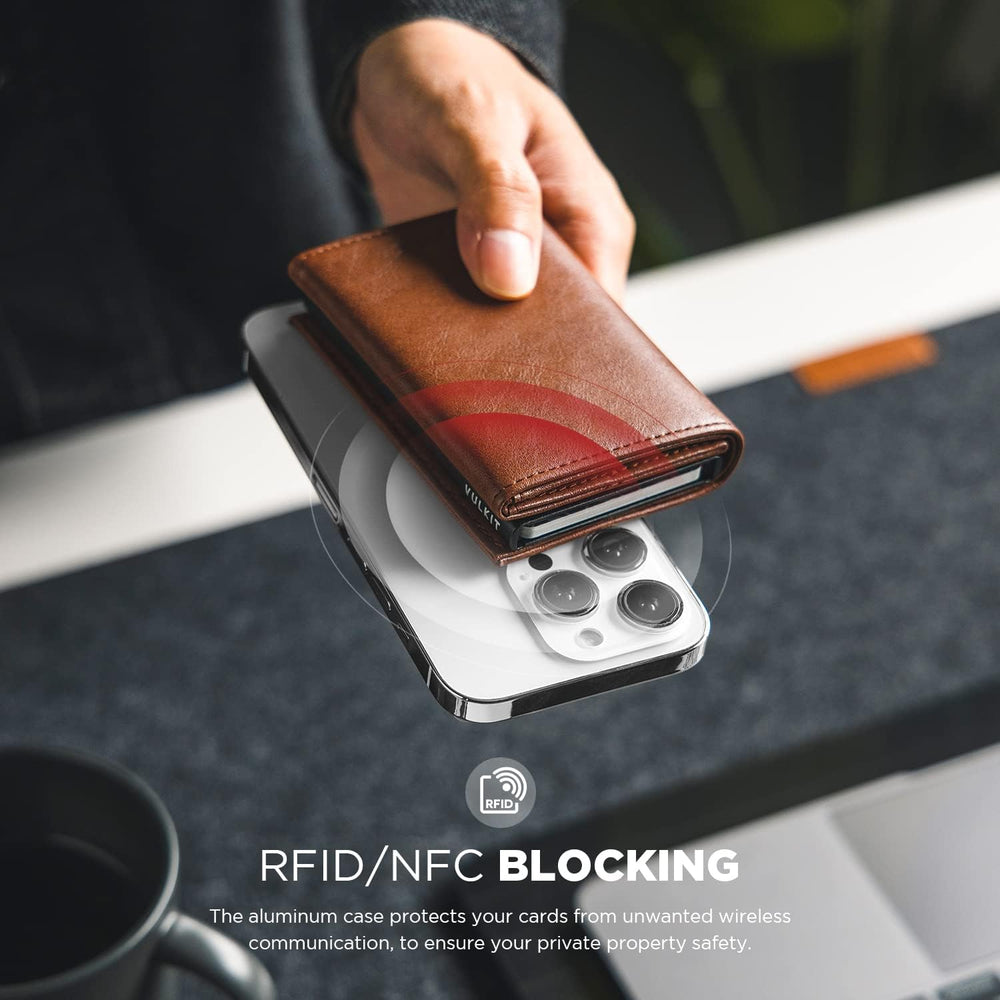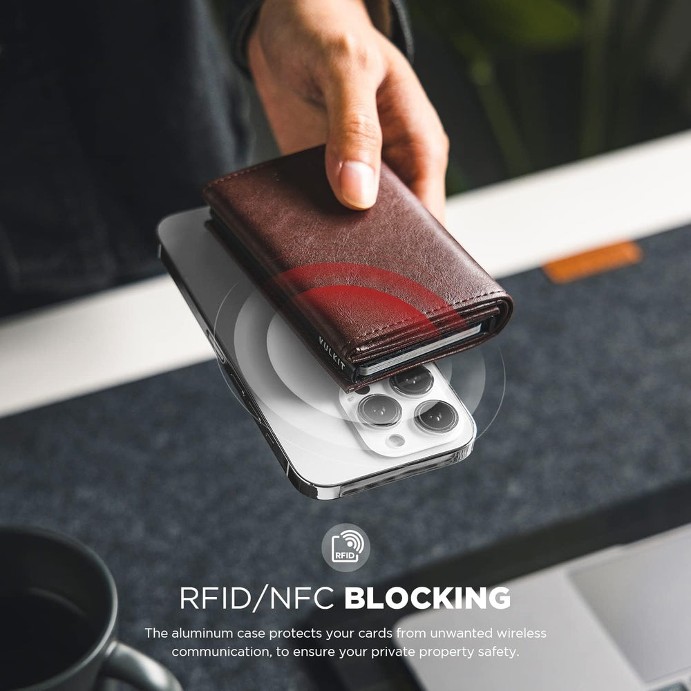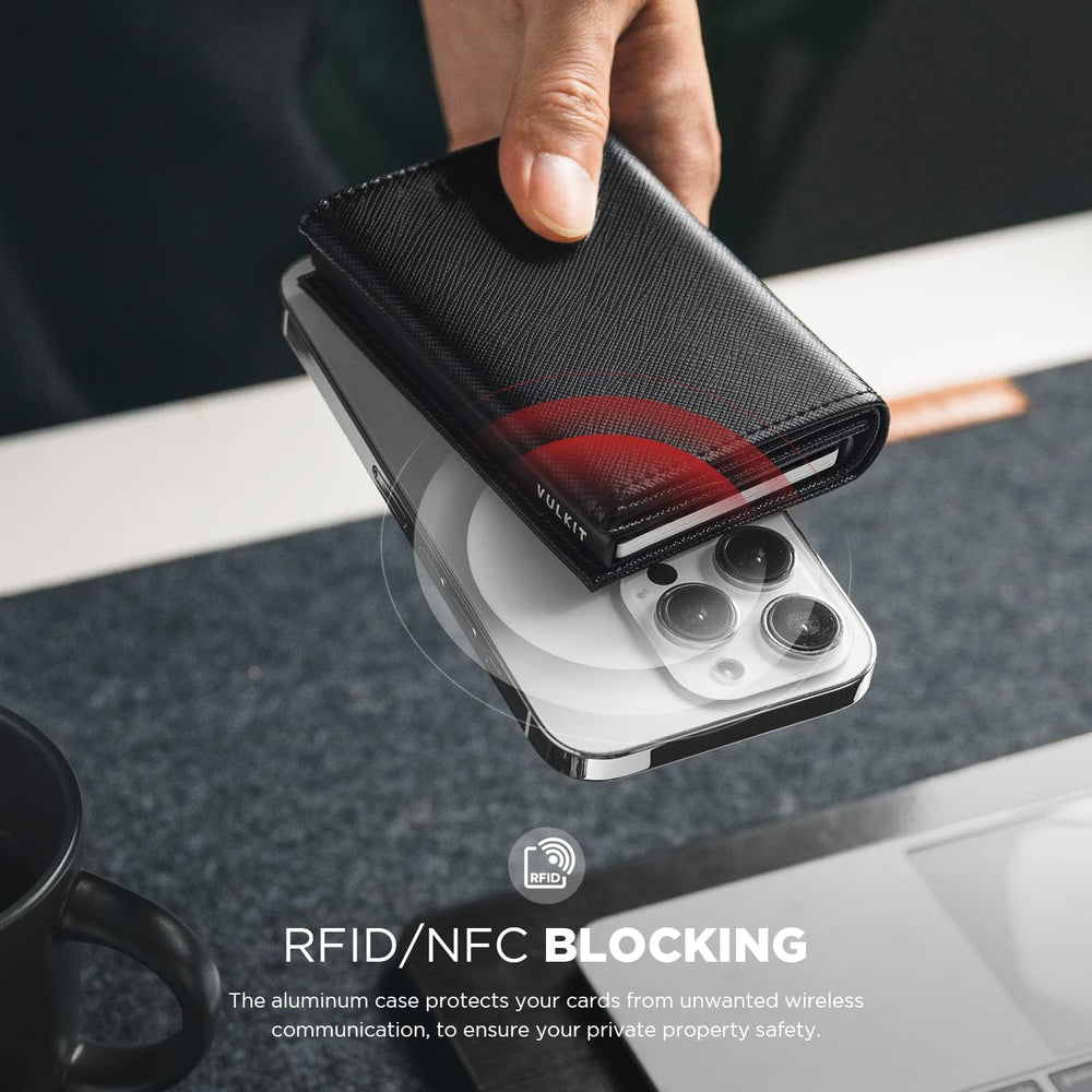 VULKIT Kreditkartenetui mit Airtag-Halter, RFID-blockierendes Kartenetui aus Metall, Magnetverschlus