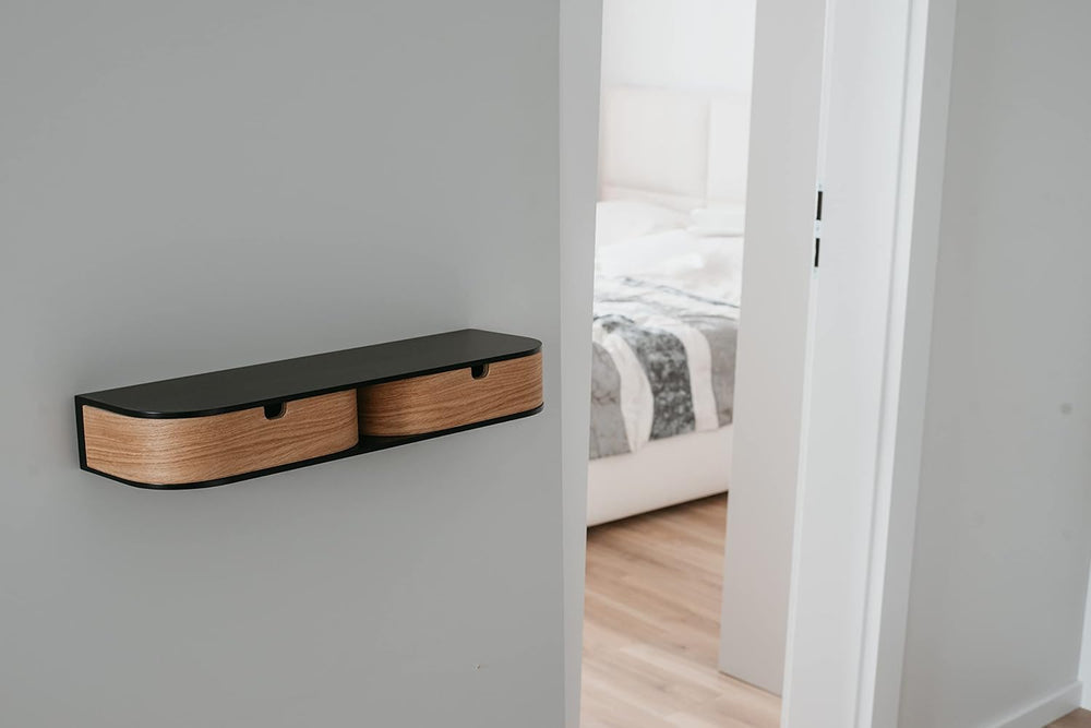 Valiai Schweberegal mit Schublade – Hängendes Wandregal Holz – Hängende kleine Wandregale mit Schubl