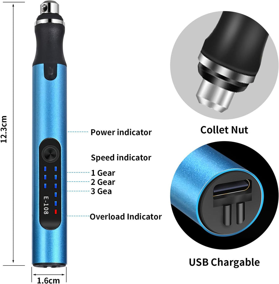 Mini Handbohrer Elektrisch, Vankarr 3-Gang DIY Mini Bohrer Wiederaufladbare Bohrmaschine mit 10 Bohr