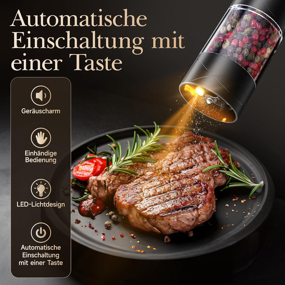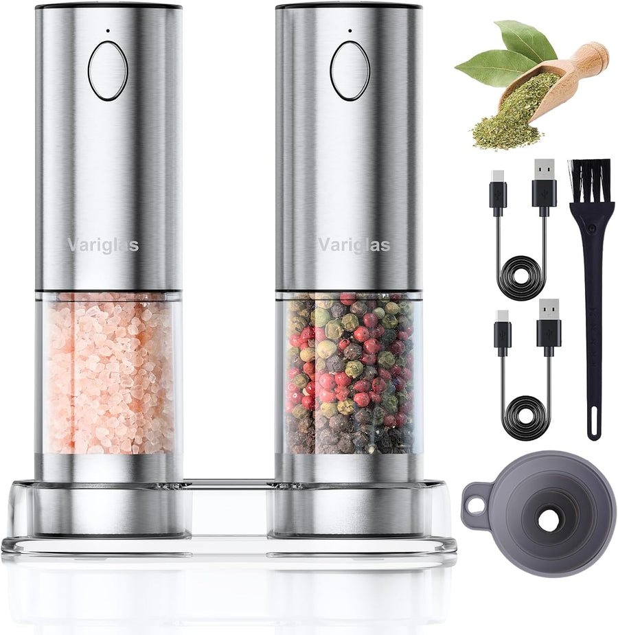 Variglas Salz und Pfeffermühlen Elektrische 2er Set mit USB Wiederaufladbarer,Verbesserte grosse Kap