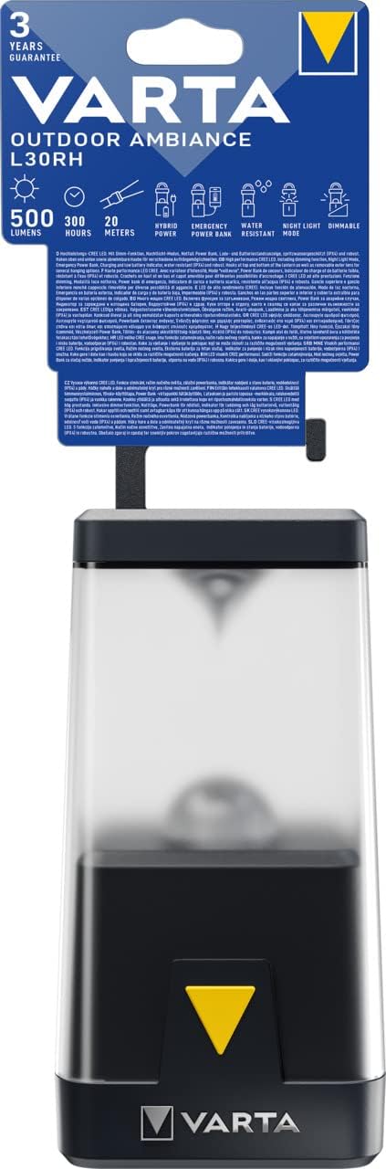 VARTA Campinglampe LED wiederaufladbar & batteriebetrieben, Outdoor Ambiance L30RH Camping Laterne,