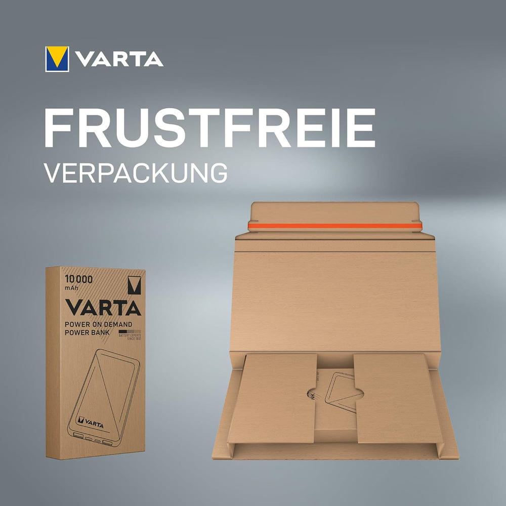 VARTA Power Bank 10000mAh, Powerbank Power on Demand mit 4 Anschlüssen (1x Micro USB, 2x USB A, 1x U