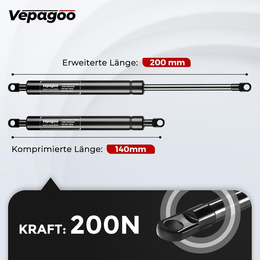 Vepagoo 200mm 200N Gasdruckdämpfer Gasdruckfeder, 20kg Gasfeder für Bettkasten, Türen, Bodenluken, S