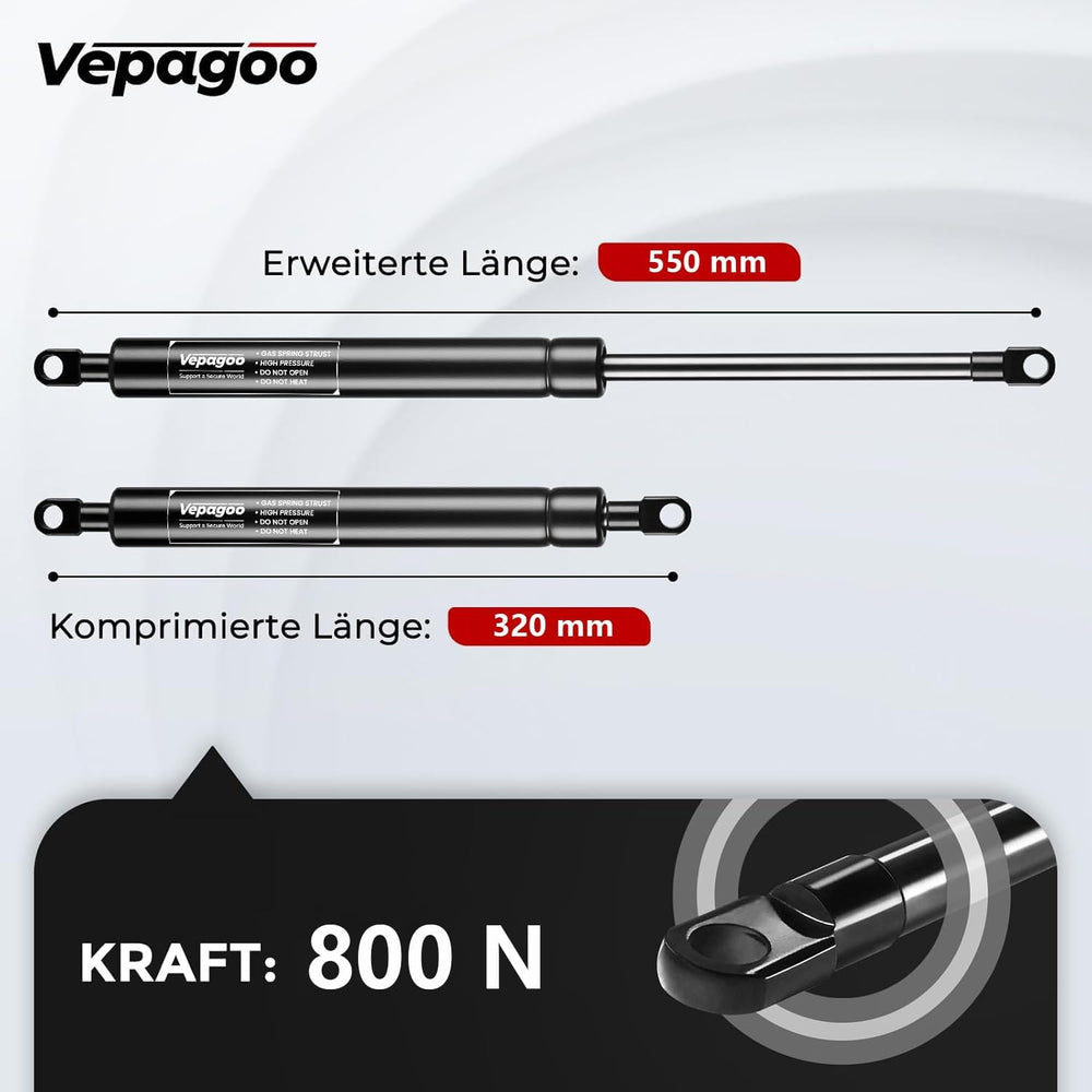 Vepagoo 550MM 800N Gasdruckdämpfer Gasdruckfeder, 80KG Gasfeder für Bettkasten, Türen, Bodenluken, S
