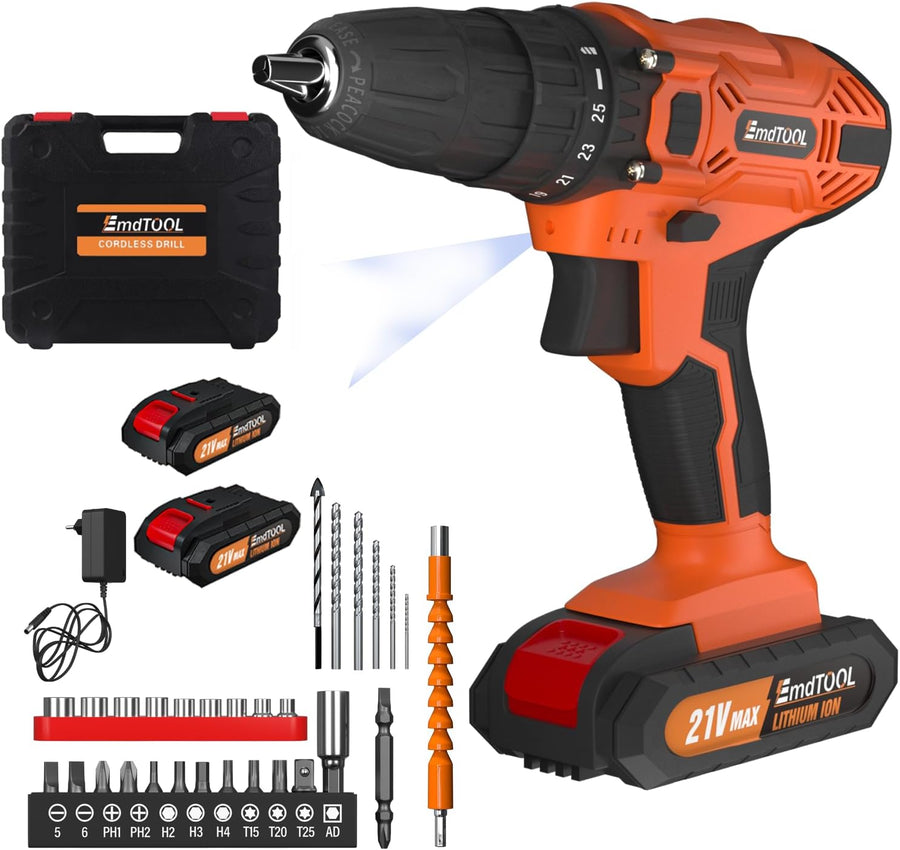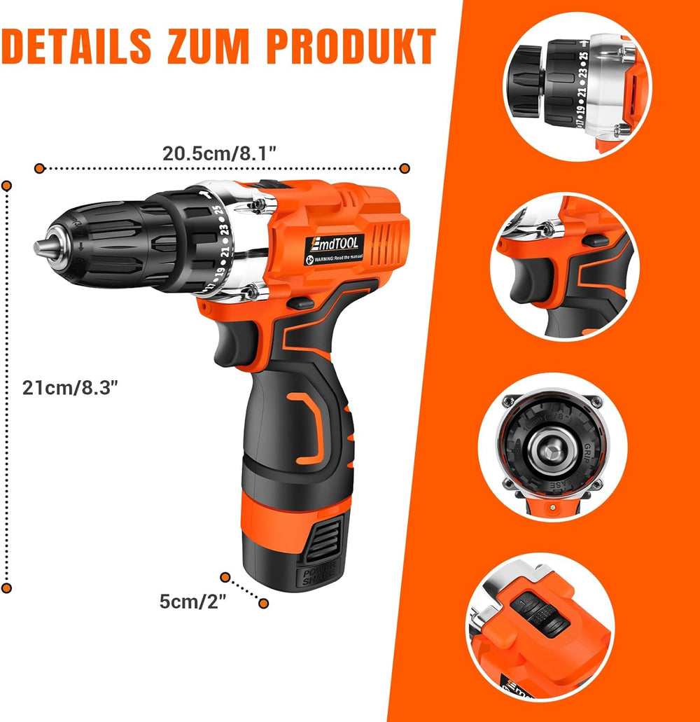21V Akkuschrauber Bohrmaschine Mit 1500mAh Akku, 45N.M Max Schlagbohrschrauber Akku Bohrmaschine Boh