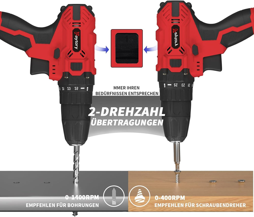 Akkubohrer Und Schrauber 21V Akku Bohrmaschine mit 1500mAh Akkus, 2-Gang Akku Schrauber Set 25+1 Tor