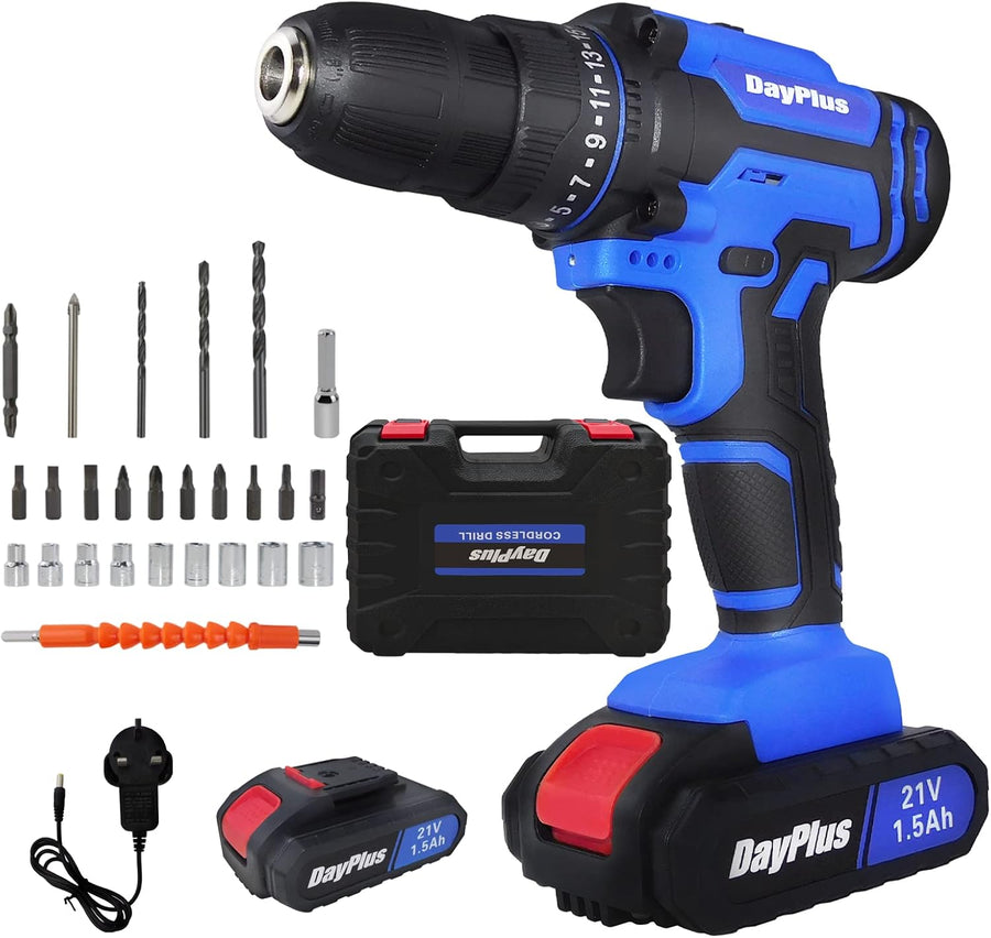 21V Akku-Bohrschrauber-Set mit 1500mAh-Akku und Ladegerät, Akkubohrmaschine mit variabler Drehzahl A