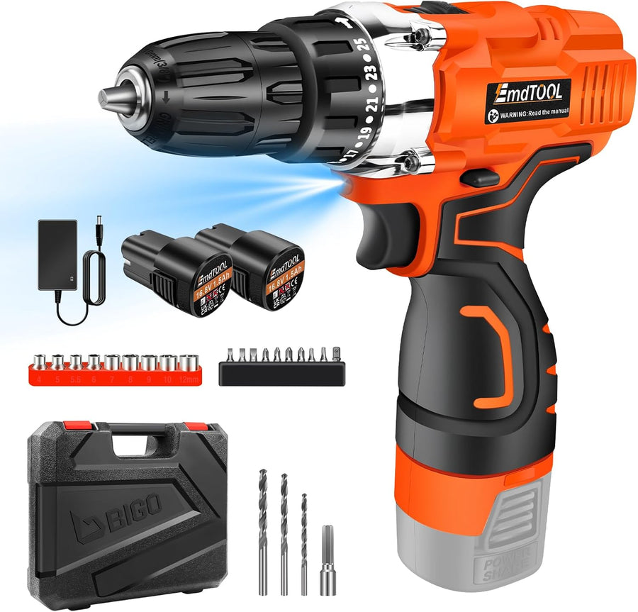 Akkuschrauber 16.8V Akkubohrer mit 2x1300mAh Akkus, Akkuschrauber Set Akkuschrauber Bohrmaschine mit