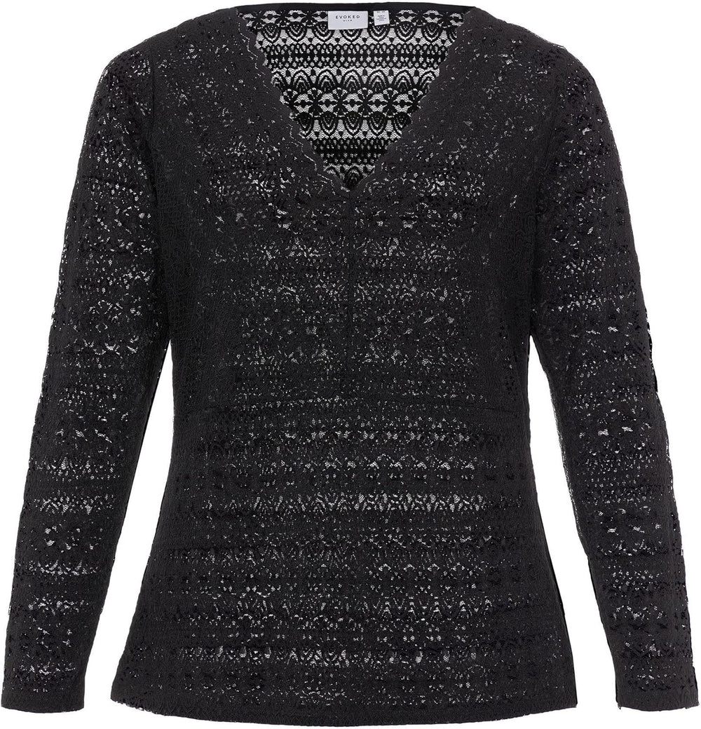 Vila Damen Evoked by Vichikka V-Neck L/S Top/Cur-Noos Langarmshirt 46 Grosse Grössen Schwarz, 46 Gro