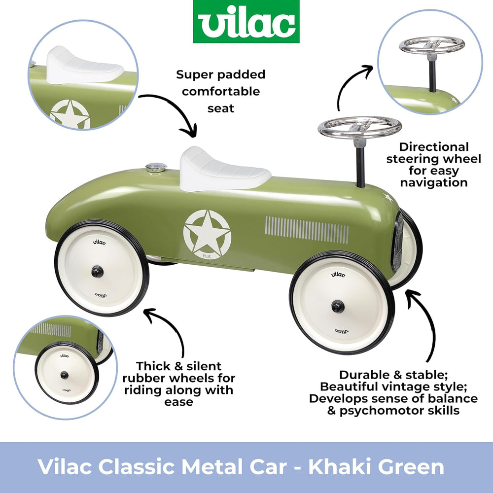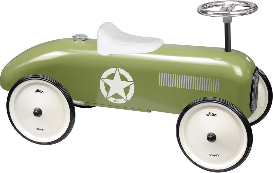 Vilac - Autoträger Vintage – Khaki – Spielzeug für Kinder oder Heimdekoration – Lenkrad – aus schick