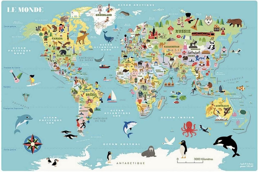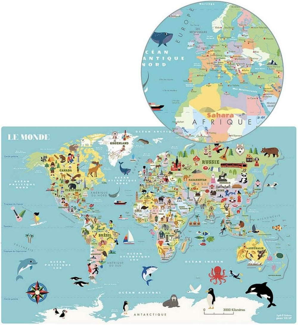 Vilac 7612 Magnetische Weltkarte Ingela P.A-ab 5 Jahren-7612, Mehrfarbig