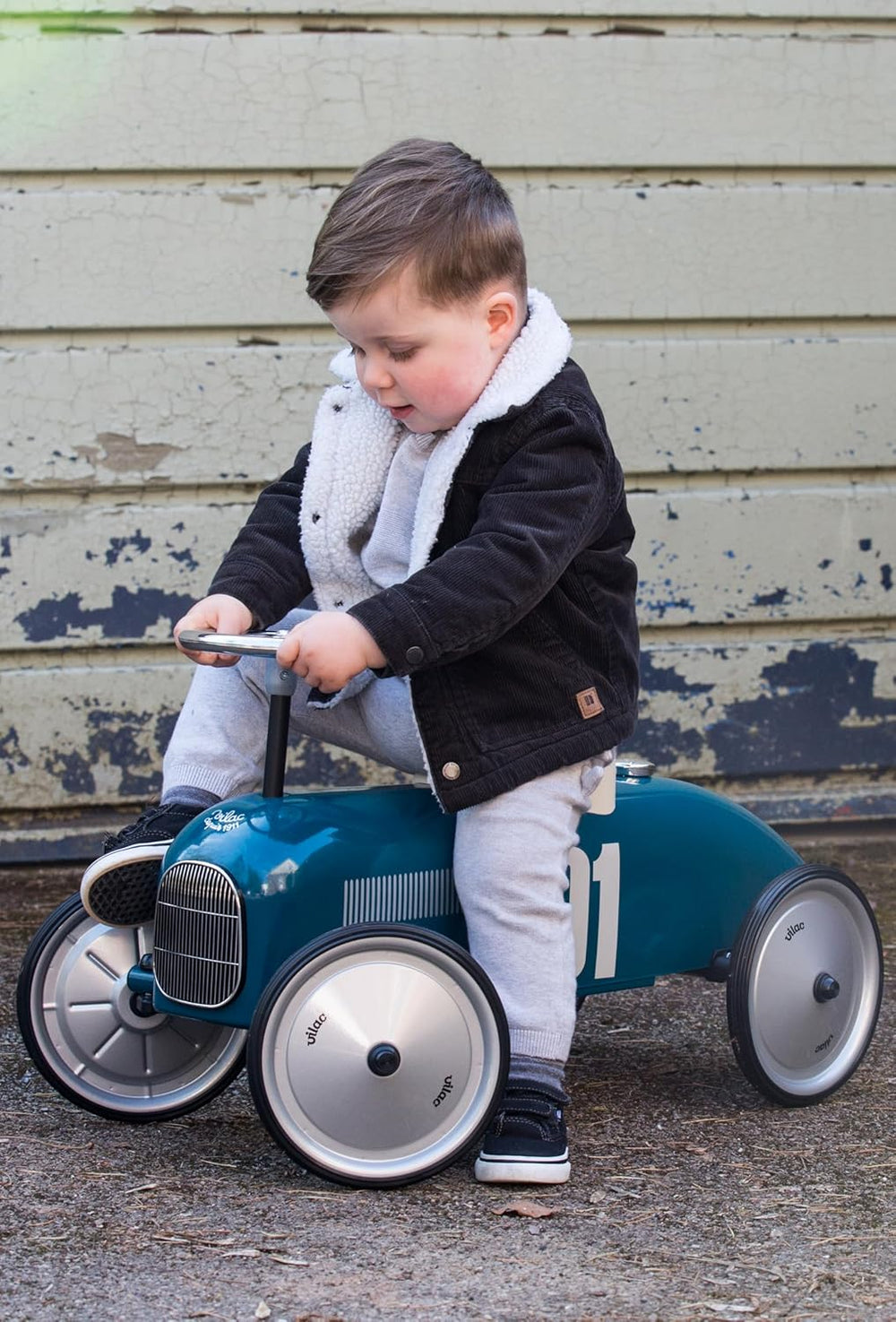 Vilac - Autoträger Vintage – Blau – Spielzeug für Kinder oder Heimdekoration – Lenkrad – aus Metall