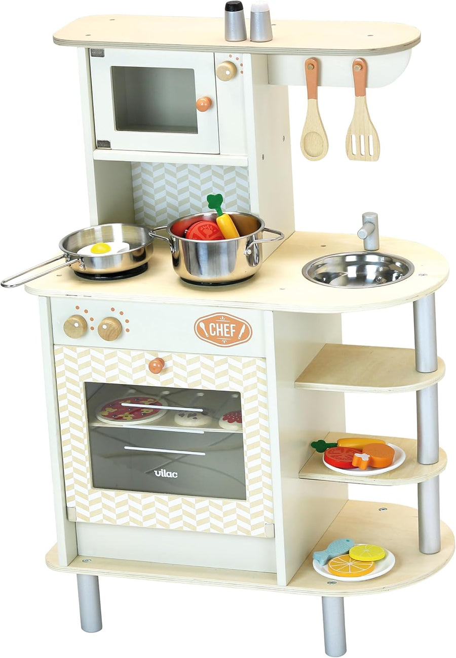 VILAC - Spiele und Spielzeug – Holzspielzeug – voll ausgestattete Küche – Utensilien – Obst – Gemüse