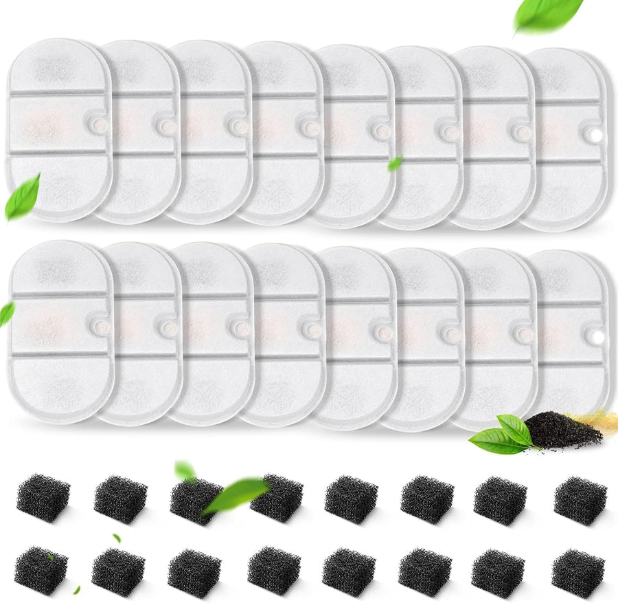 VinDox 32 Stück Katzenbrunnen Filter, 16 Stück Filter und mit 16 Stück Schwämmen Harz und Aktivkohle