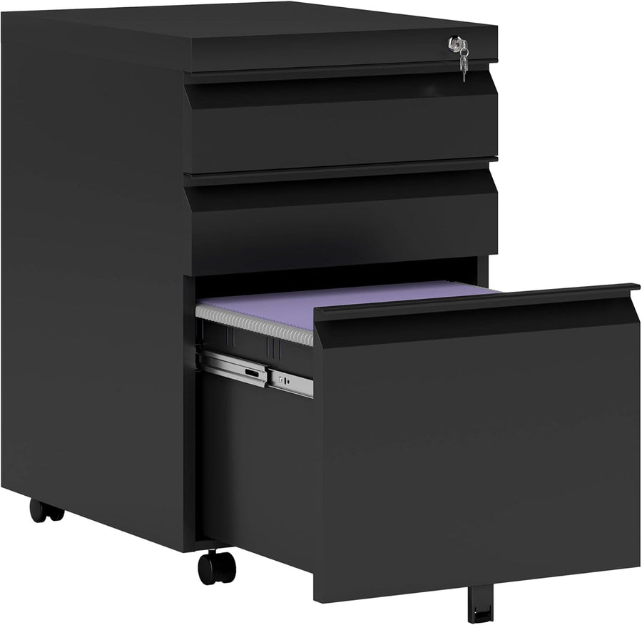 Vinsetto Rollcontainer, mobiler Aktenschrank mit 3 Schubladen, Büroschrank, Aufbewahrung, Stahl, Sch