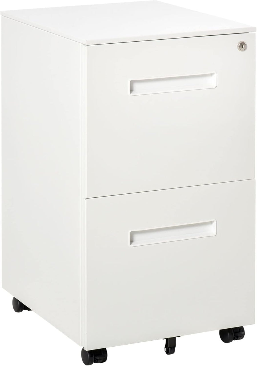 Vinsetto Rollcontainer Aktenschrank mit 2 Schubladen, Abschliessbarer Büroschrank mit Rollen, Büroco