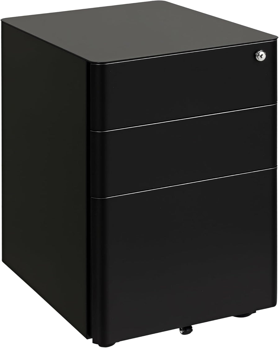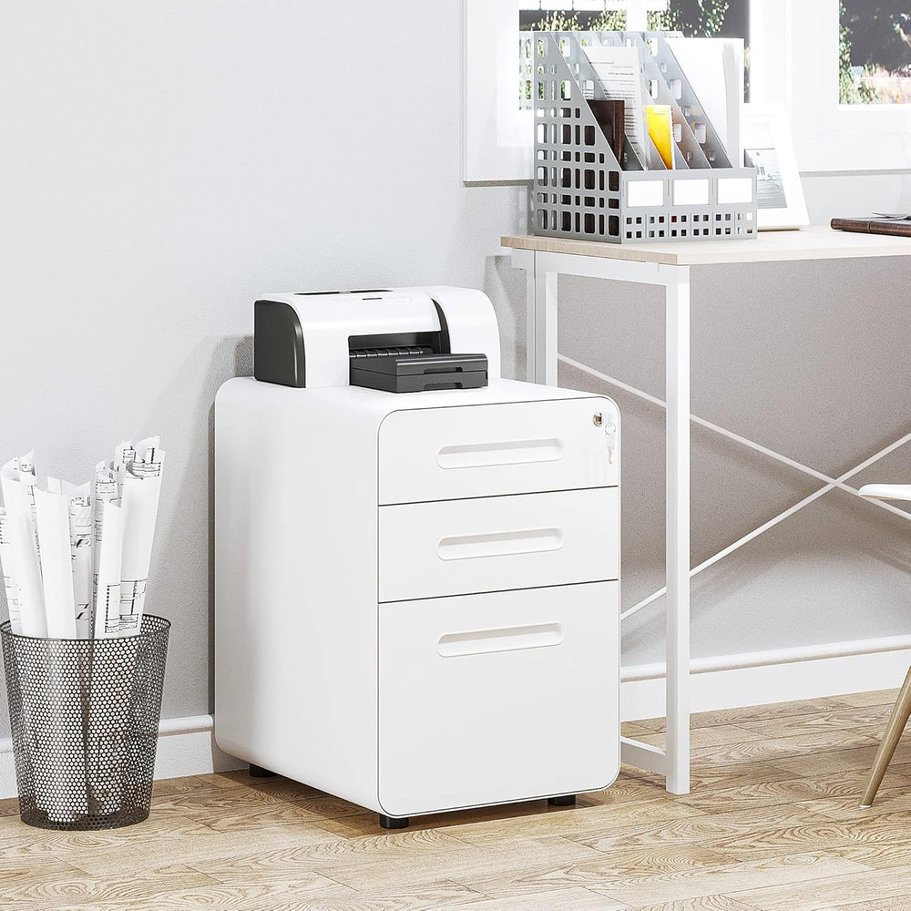 Vinsetto Rollcontainer Aktenschrank mit 3 Schubladen, Büroschrank mit Schloss, Druckschrank, Untersc