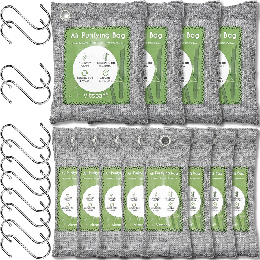 12 Stück Bambuskohle Luftreinigungsbeutel, Aktivkohlebeutel, Geruchsabsorber, Feuchtigkeitsabsorber,