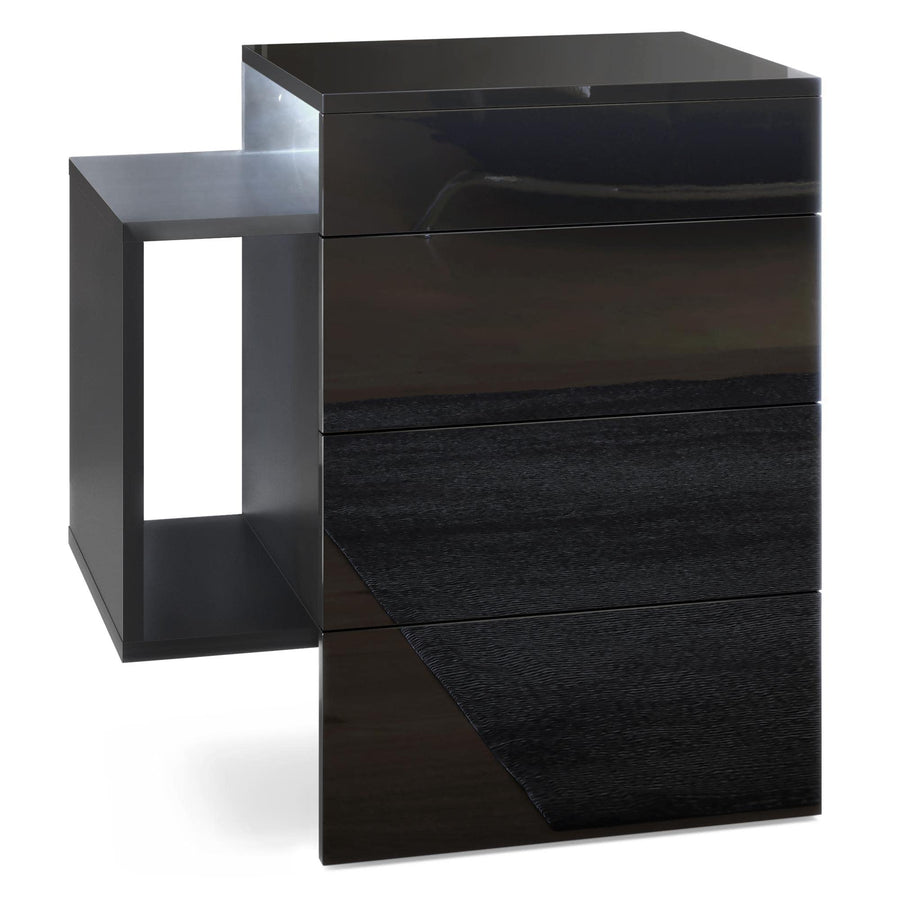 Vladon Nachttisch Flow, Nachttischschrank mit Schublade, Schwarz Hochglanz/Schwarz Hochglanz (60 x 4